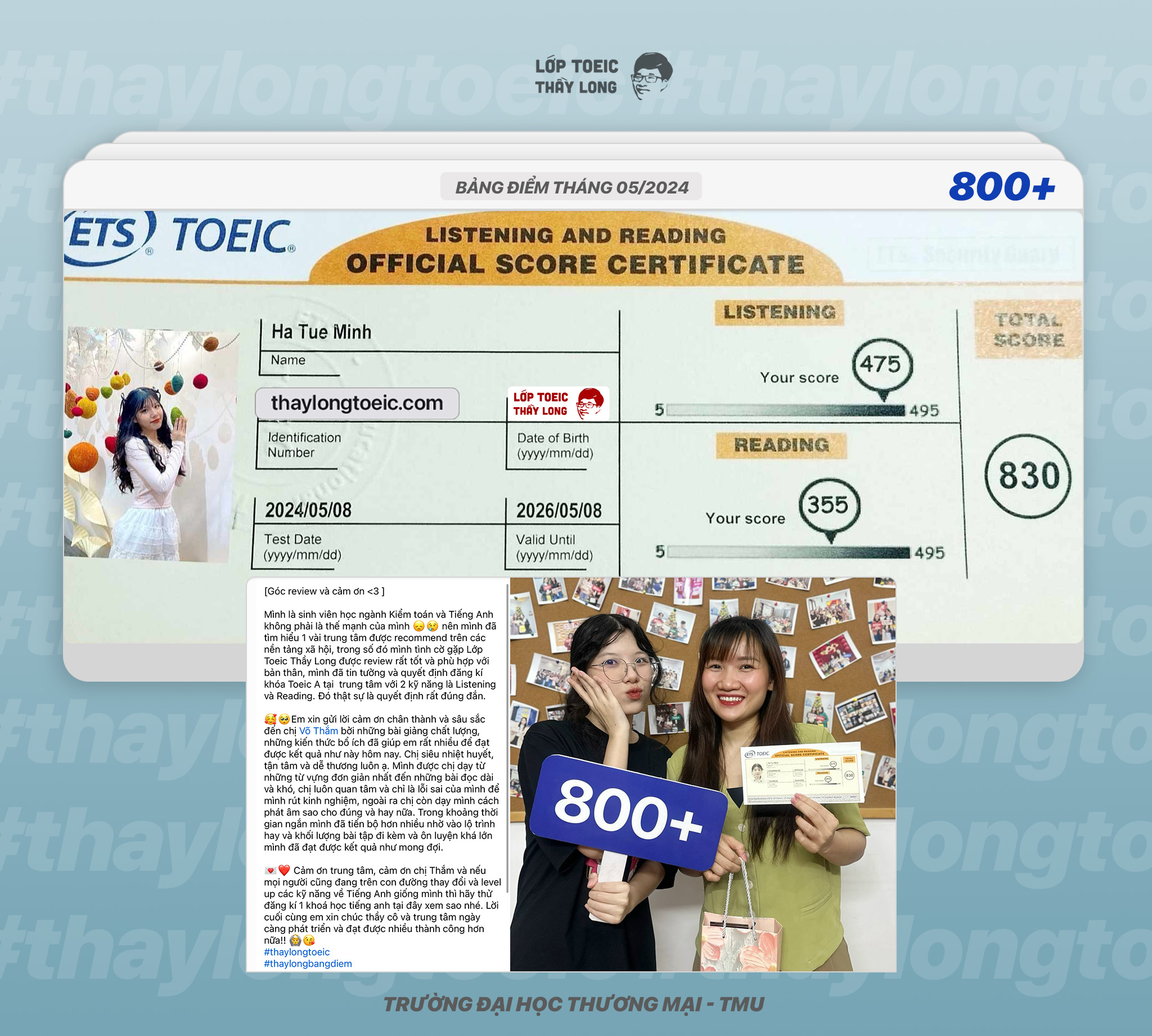 Ha Tue Minh 830 TOEIC 08/05/2024 Ms Thắm Võ