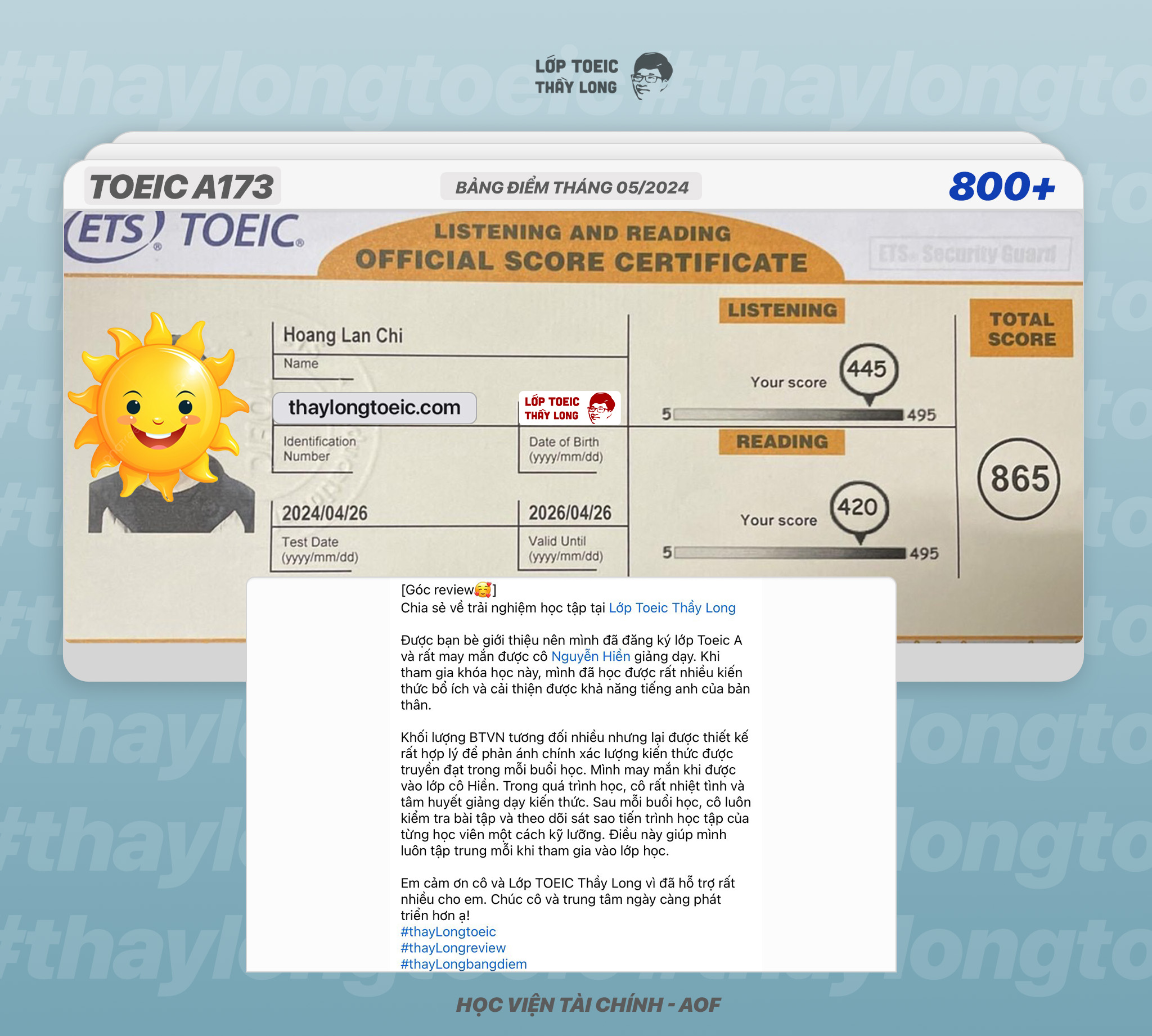 Hoang Lan Chi 865 TOEIC 26/04/2024 Ms Hiền A173