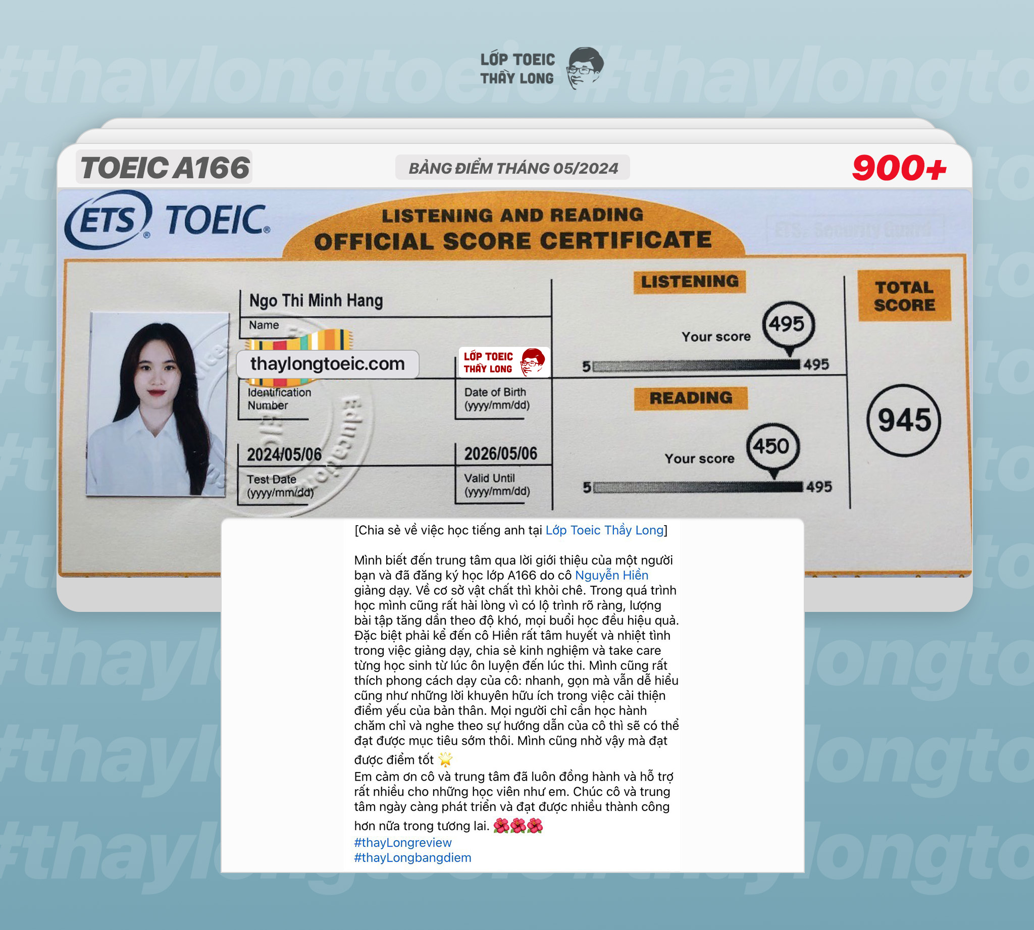 Ngo Thi Minh Hang 945 TOEIC 06/05/2024 Ms Hiền A166