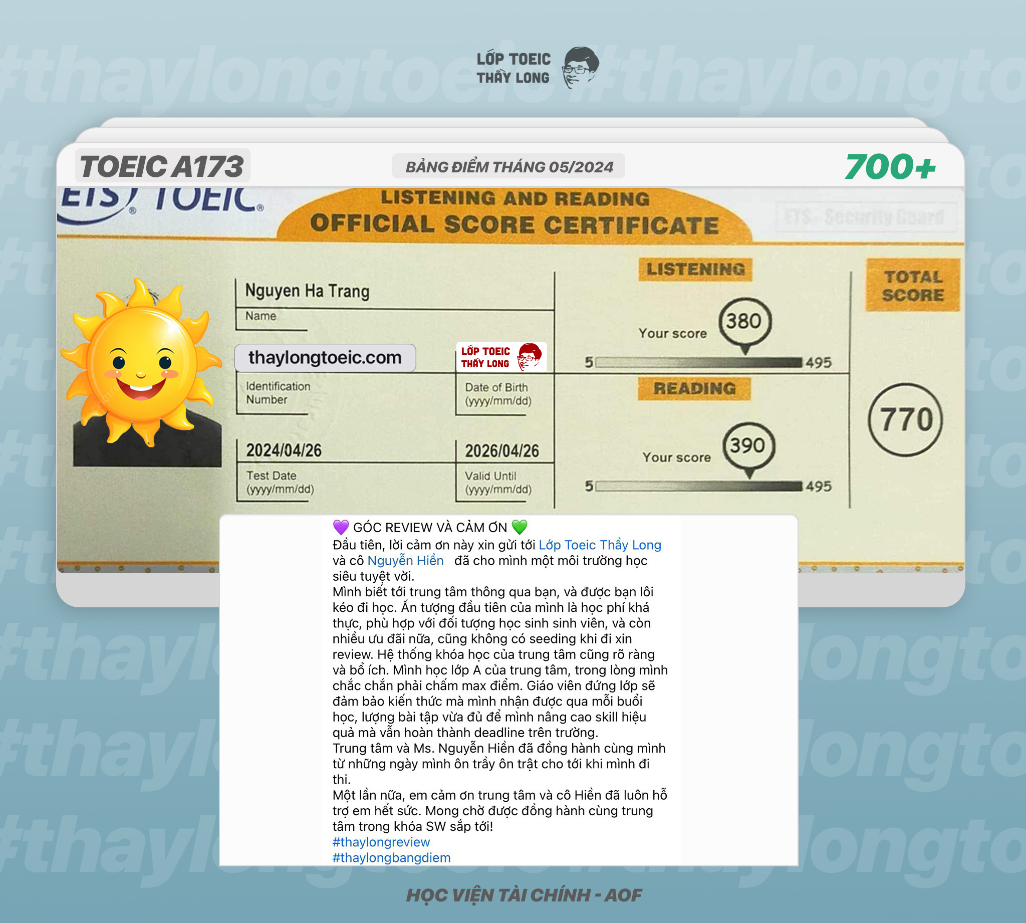Nguyen Ha Trang 770 TOIEC 26/04/2024 Ms Hiền A173