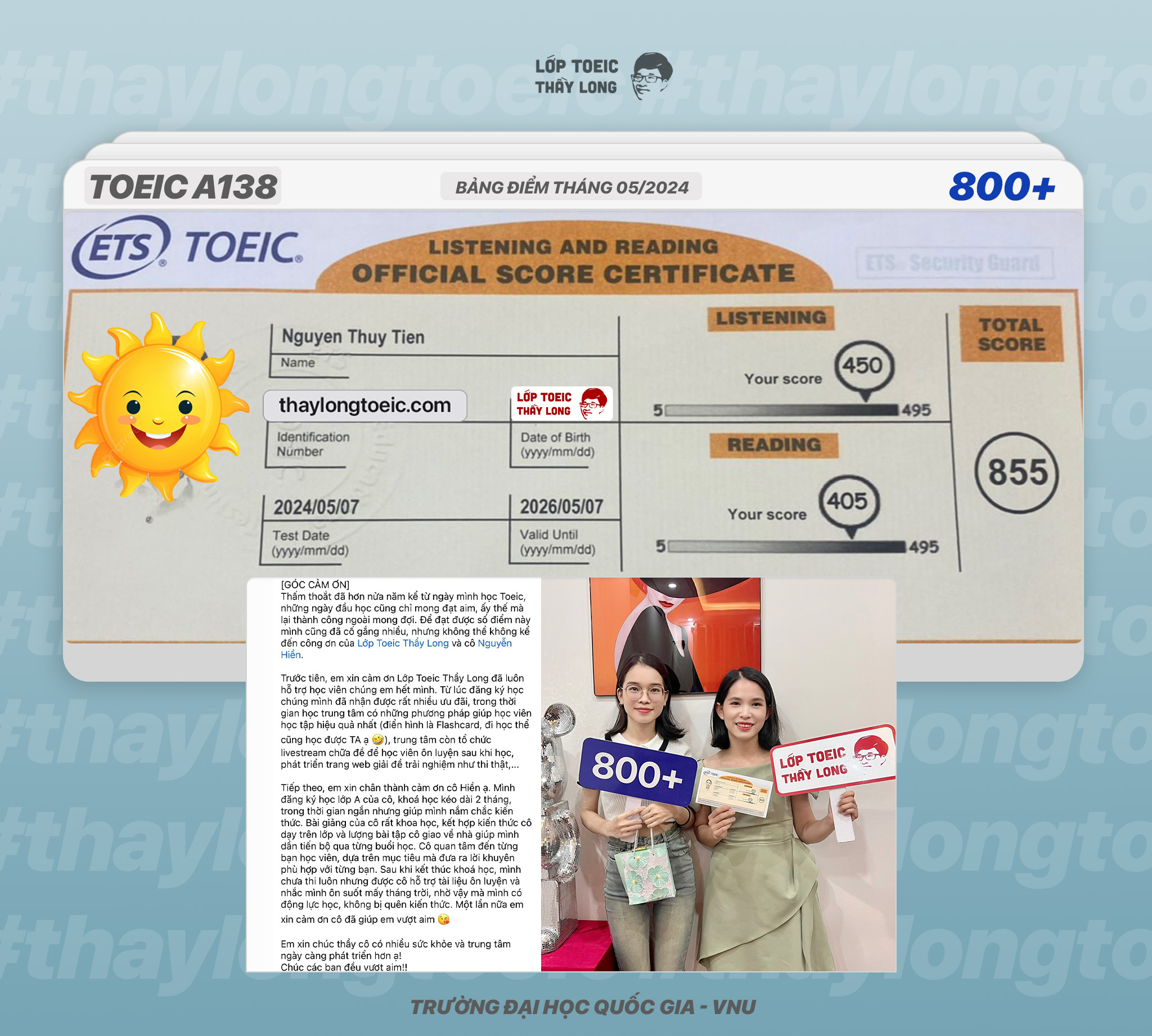 Nguyen Thuy Tien 855 TOEIC 07/05/2024 Ms Hiền A138