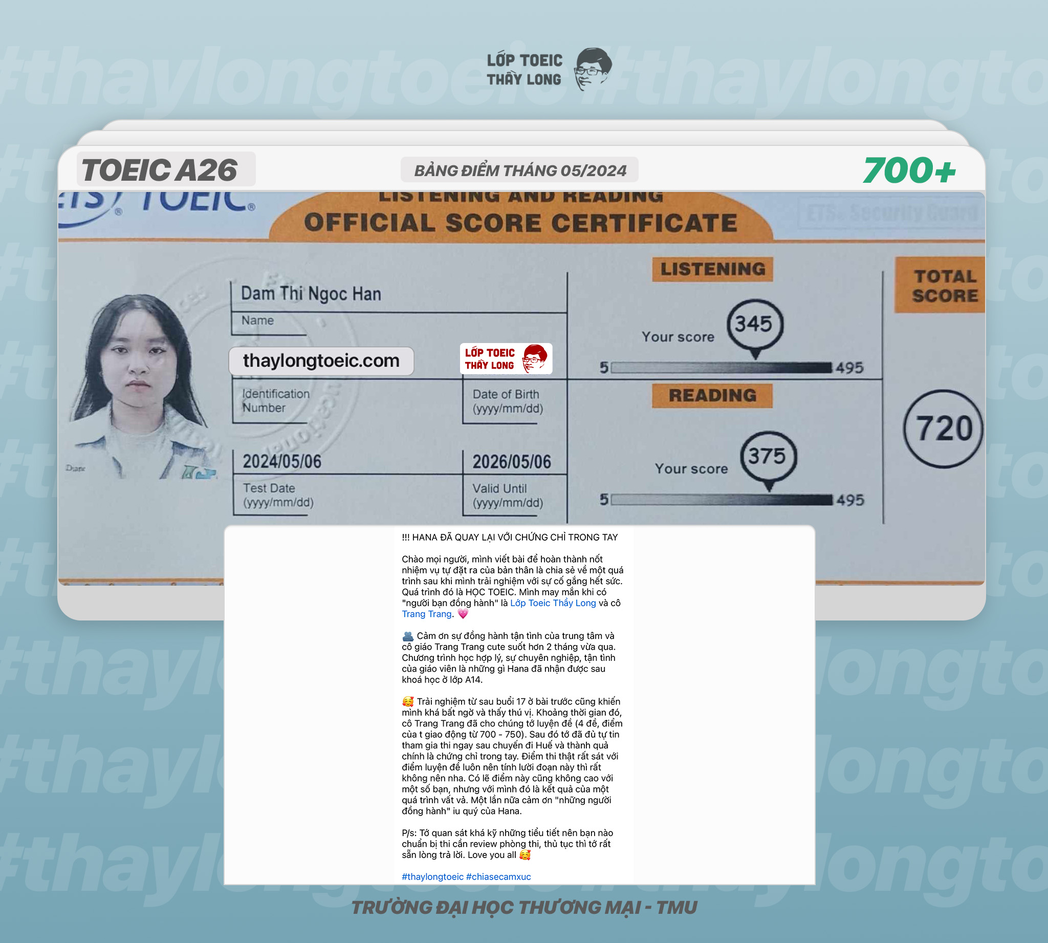 Dam Thi Kieu Lam 745 TOEIC 04/05/2024 Mr Ngọc Trung A26