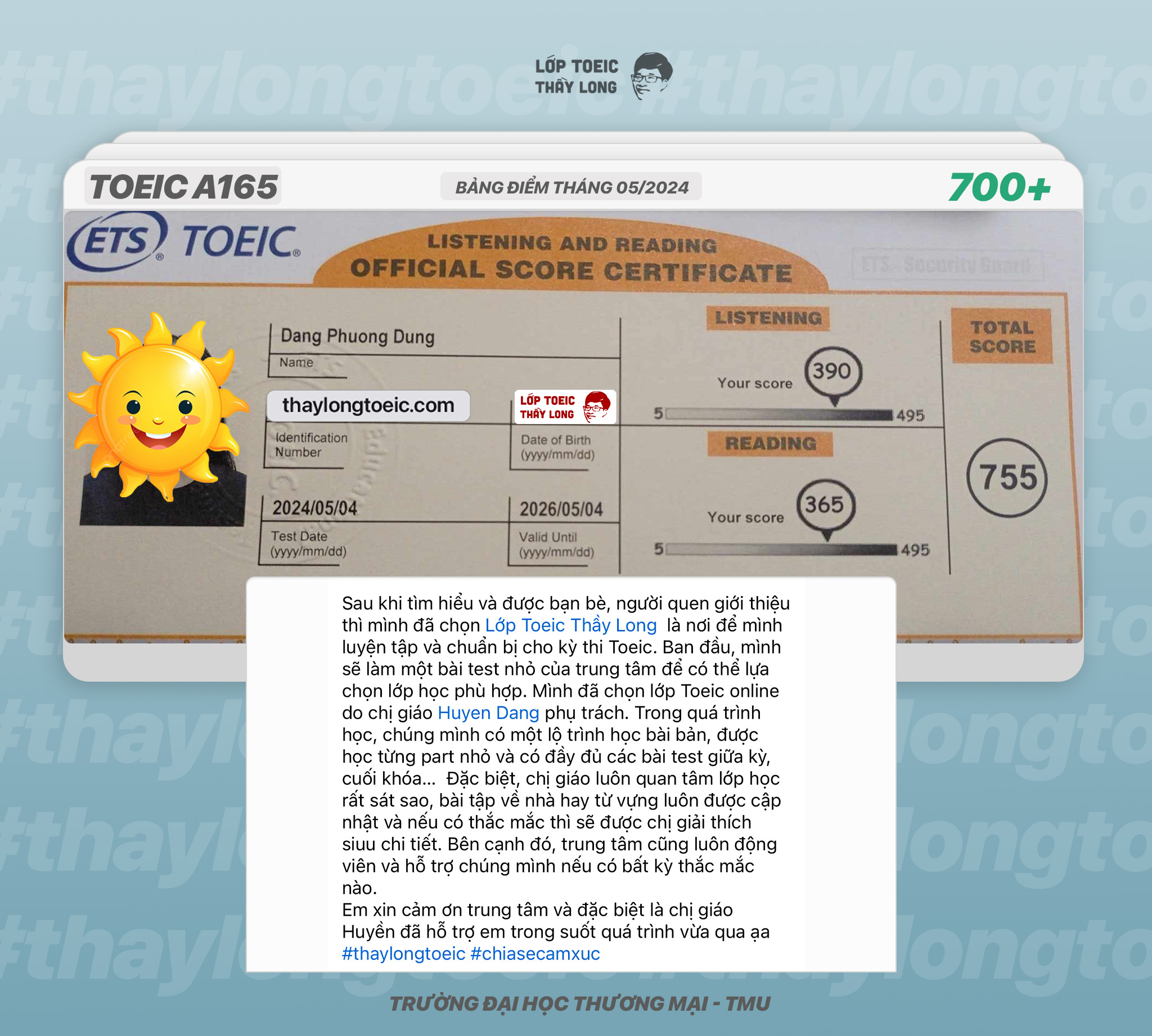Dang Phuong Dung 755 TOEIC 04/05/2024 Ms Khánh Huyền
