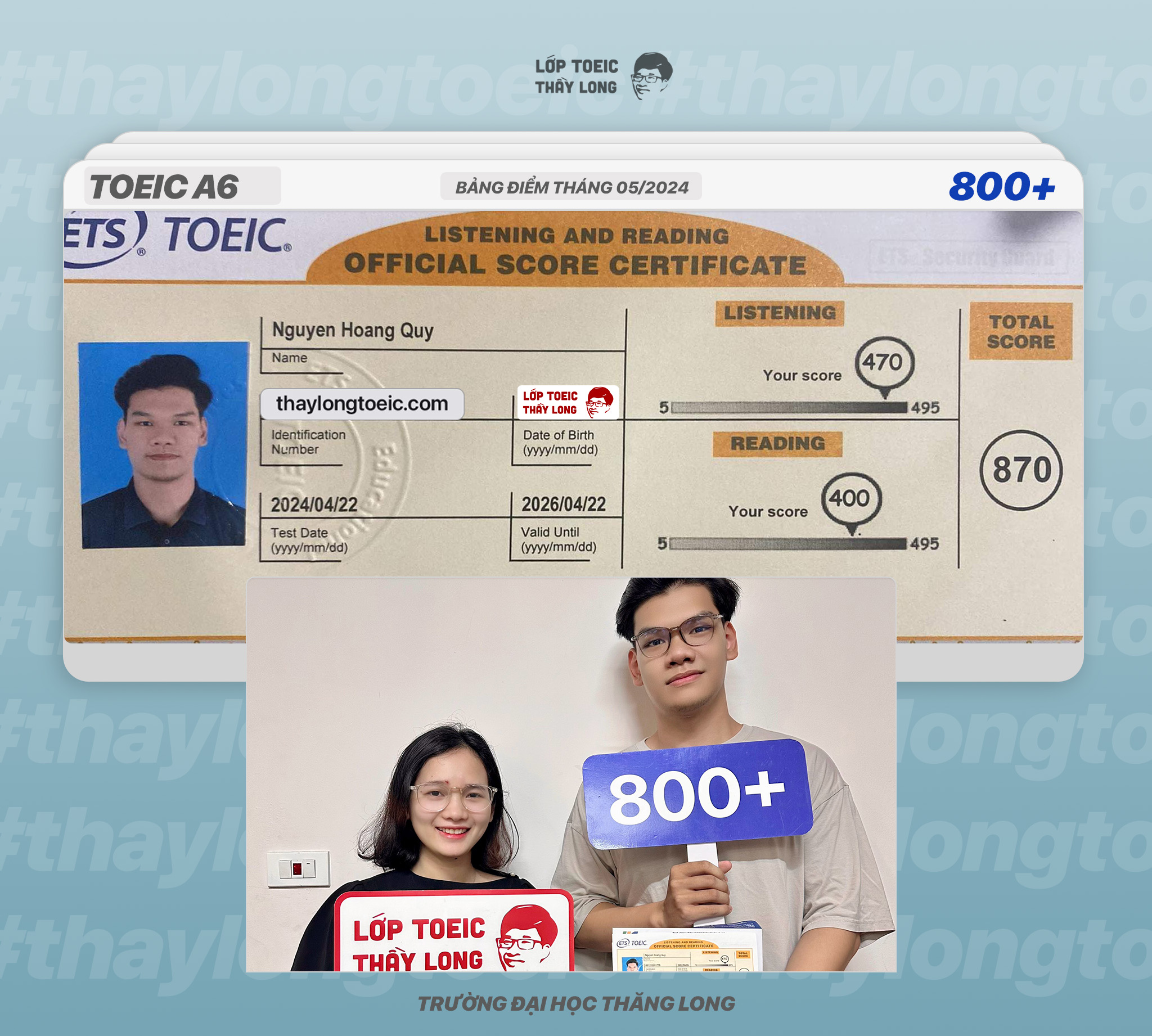 Nguyen Hoang Quy 870 TOEIC 22/04/2024 Ms Thu Hương A6