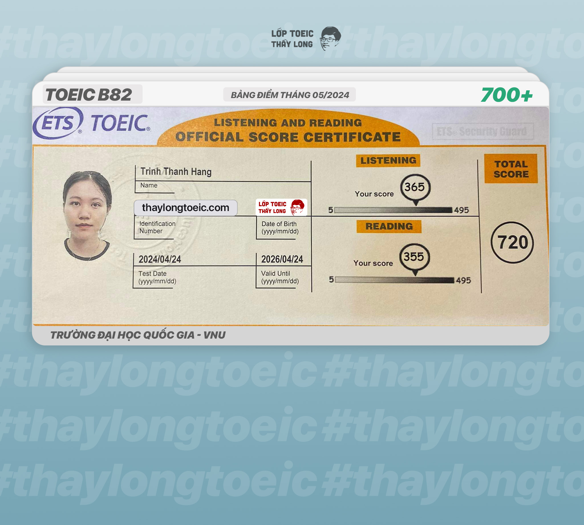 Trinh Thanh Hang 720 TOEIC 24/04/2024 Ms Thu Hương B82