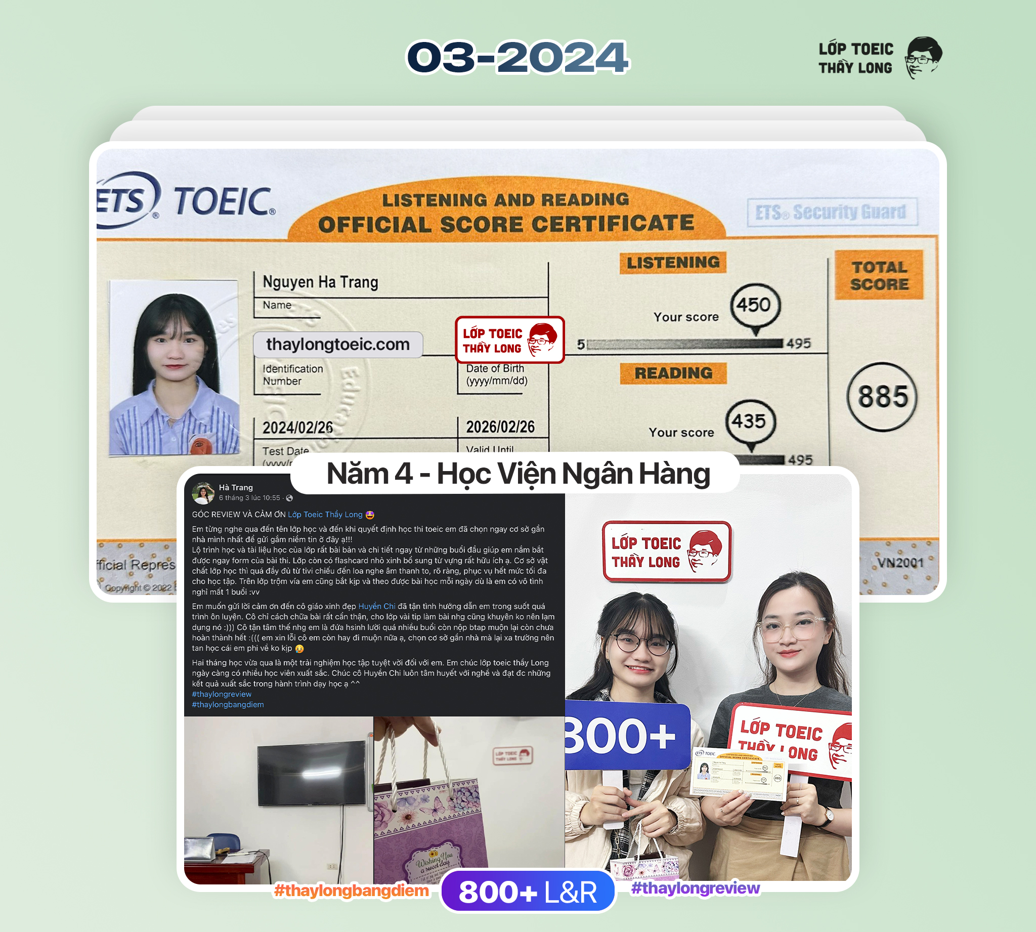 Nguyen Ha Trang 885 TOEIC 26/02/2024 Ms Huyền Chi A154