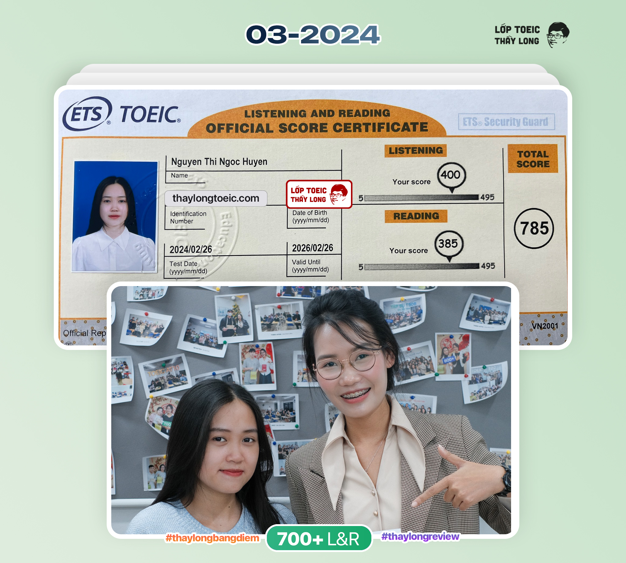 Nguyen Thi Ngoc Huyen 785 TOEIC 26/02/2024 Ms Liên AT10