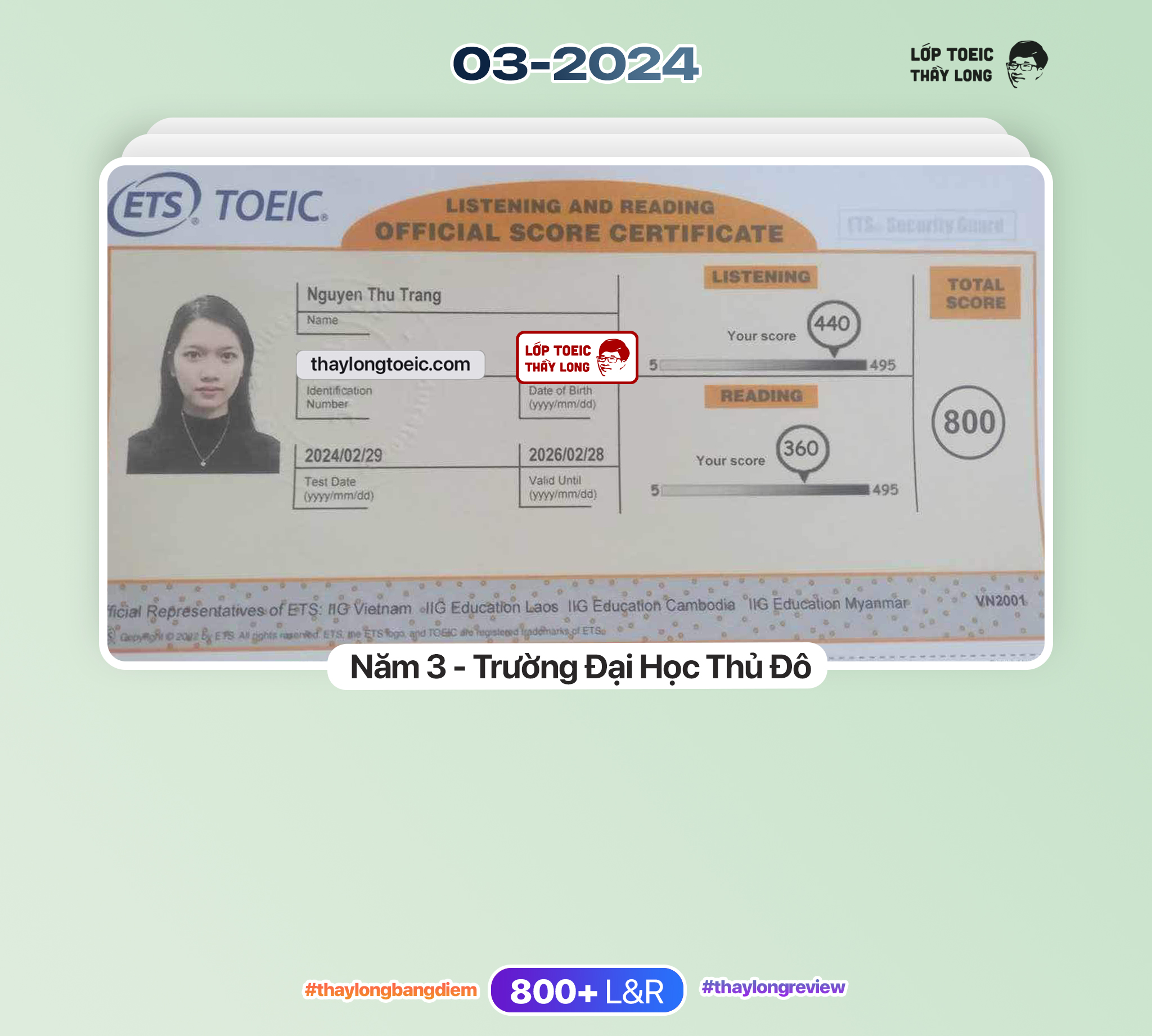 Nguyen Thu Trang 800 TOEIC 29/02/2024 Ms Huyền Chi A154