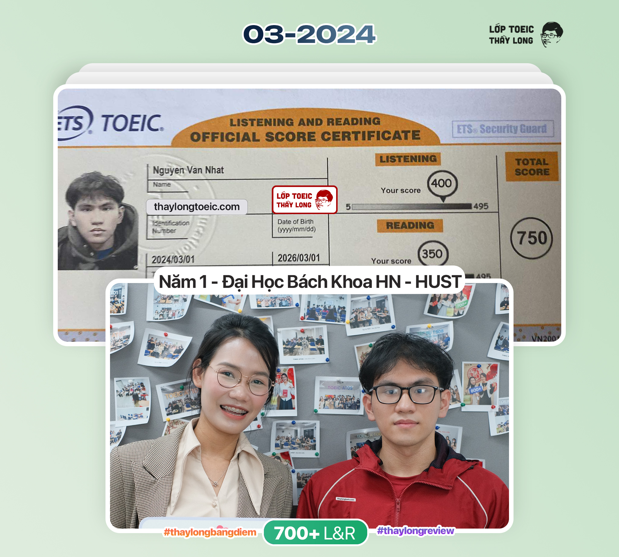 Nguyen Van Nhat 750 TOEIC 01/03/2024 Ms Liên AT10