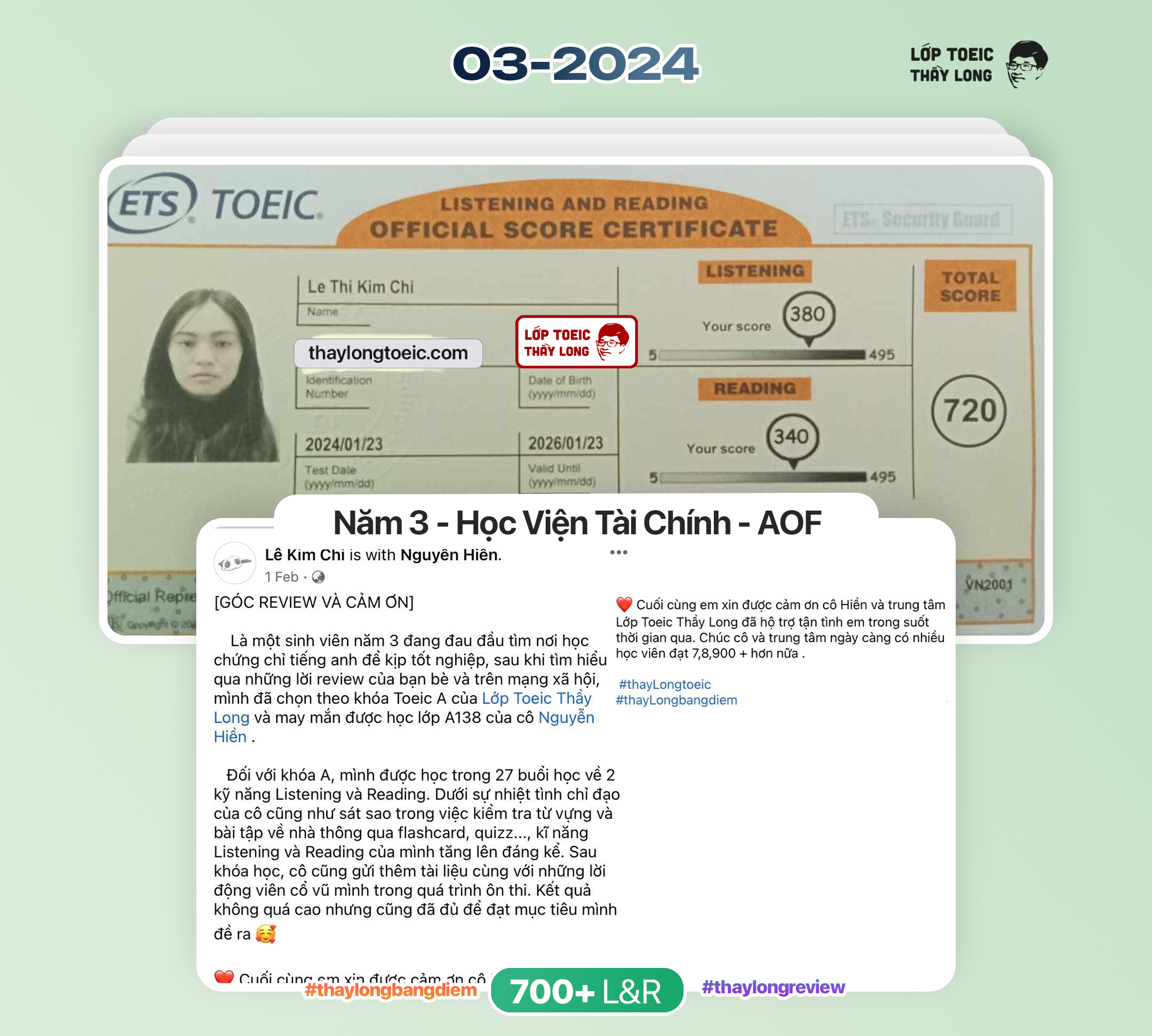 Le Thi Kim Chi 720 TOEIC 23/01/2024 Ms Hiền A138