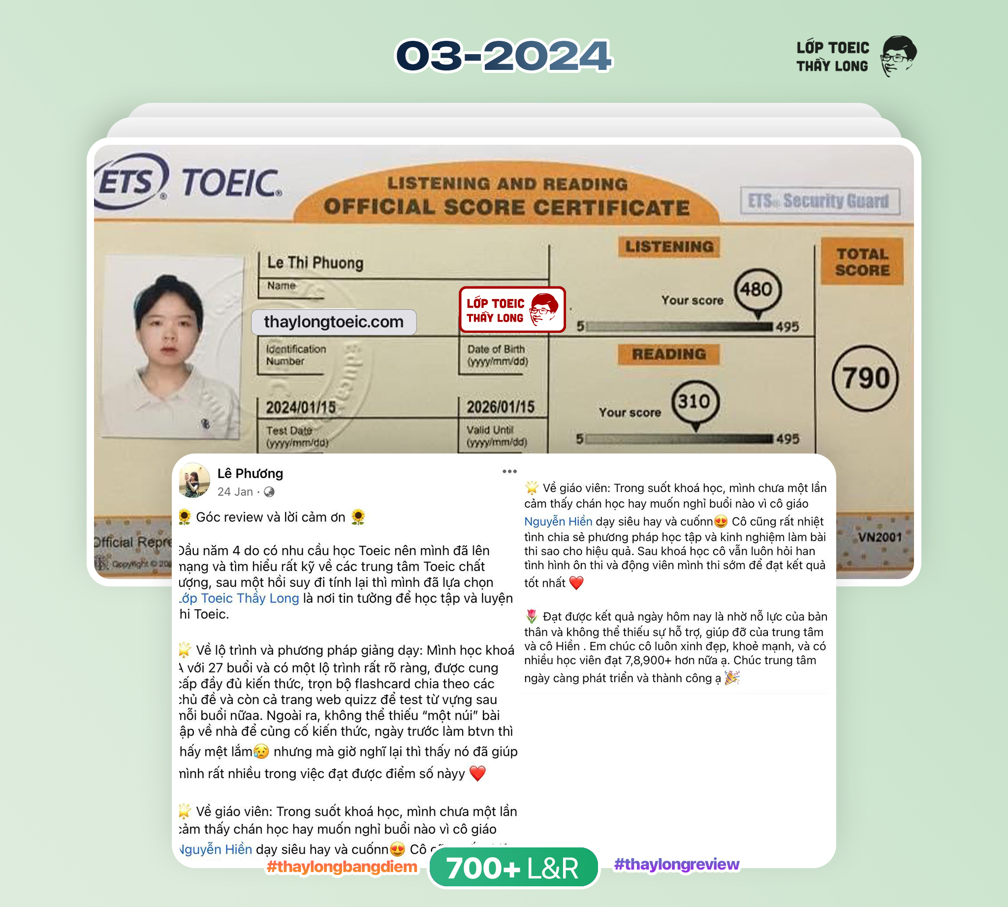 Le Thi Phuong 790 TOEIC 15/01/2024 Ms Hiền A127
