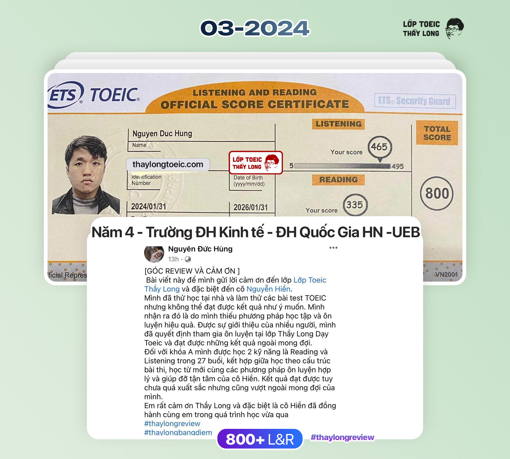 Nguyen Duc Hung 800 TOEIC 31/01/2024 Ms Hiền A51