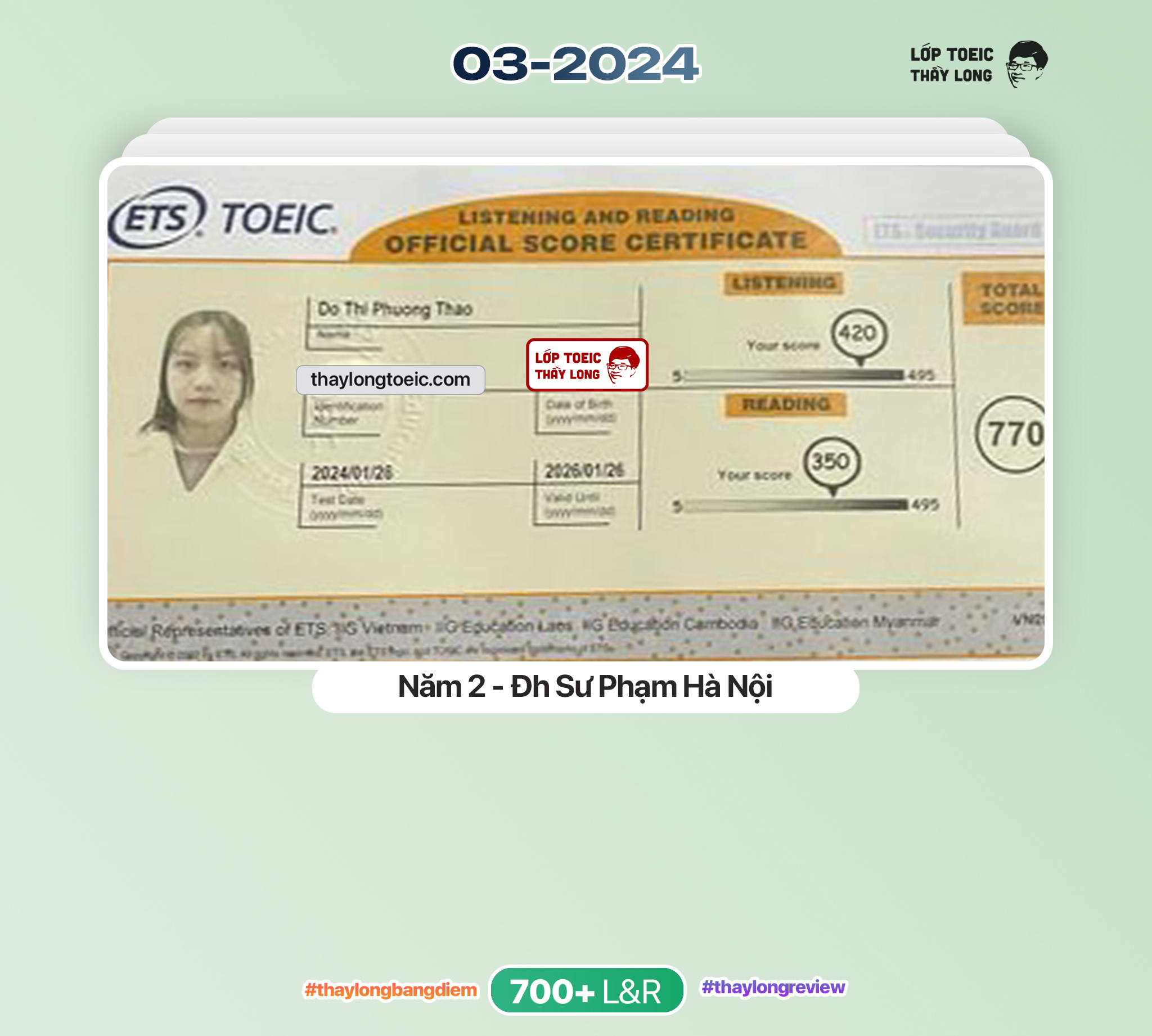 Do Thi Phuong Thao 770 TOEIC 28/01/2024 Ms Linh Chi ft Ms Hiền B80