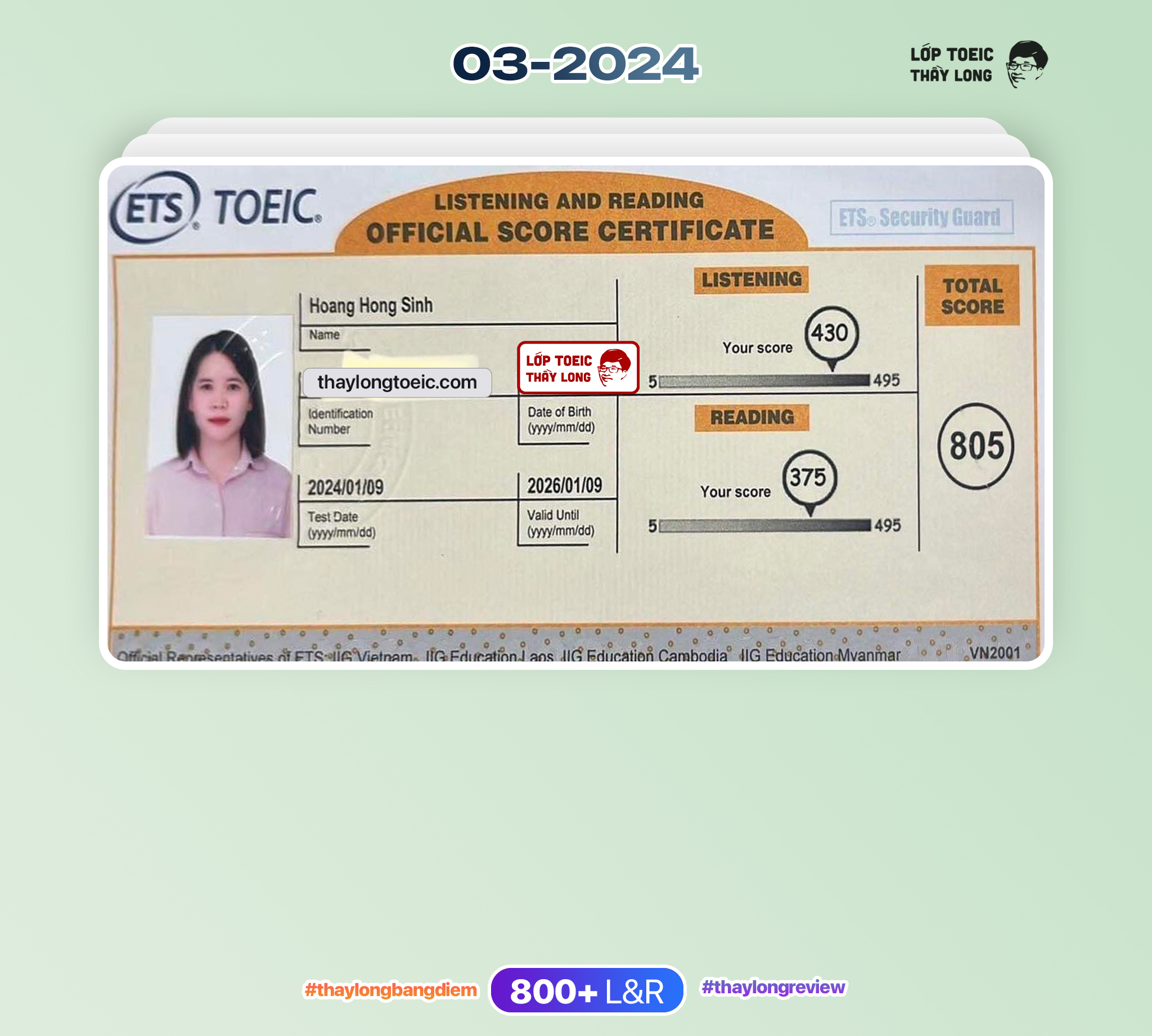 Hoang Hong Sinh 805 TOEIC 09/10/2024 Ms Trang Trang ft Ms Hiền B80