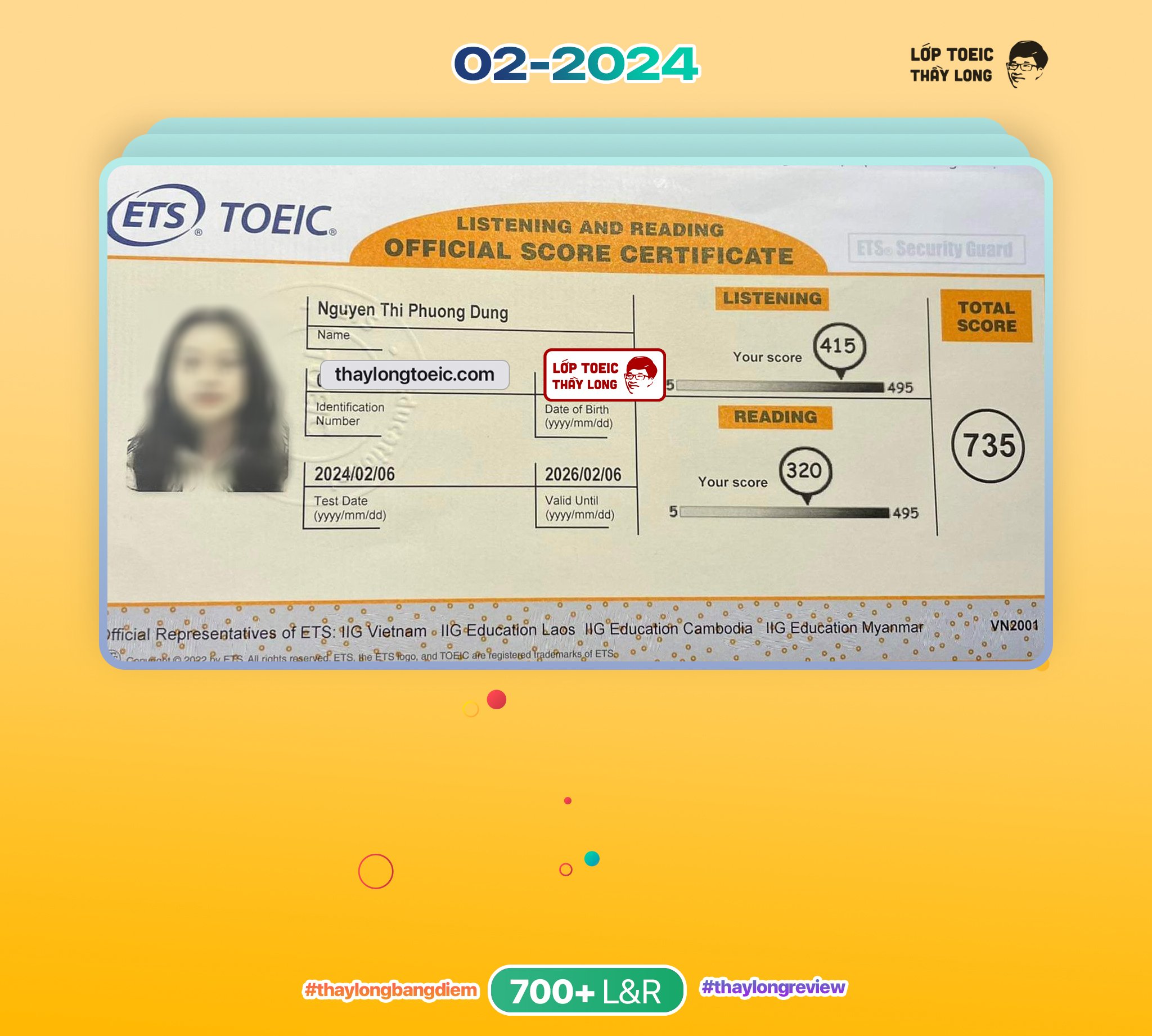 Nguyen Thi Phuong Dung 735 TOEIC 06/02/2024 Ms Thắm A15