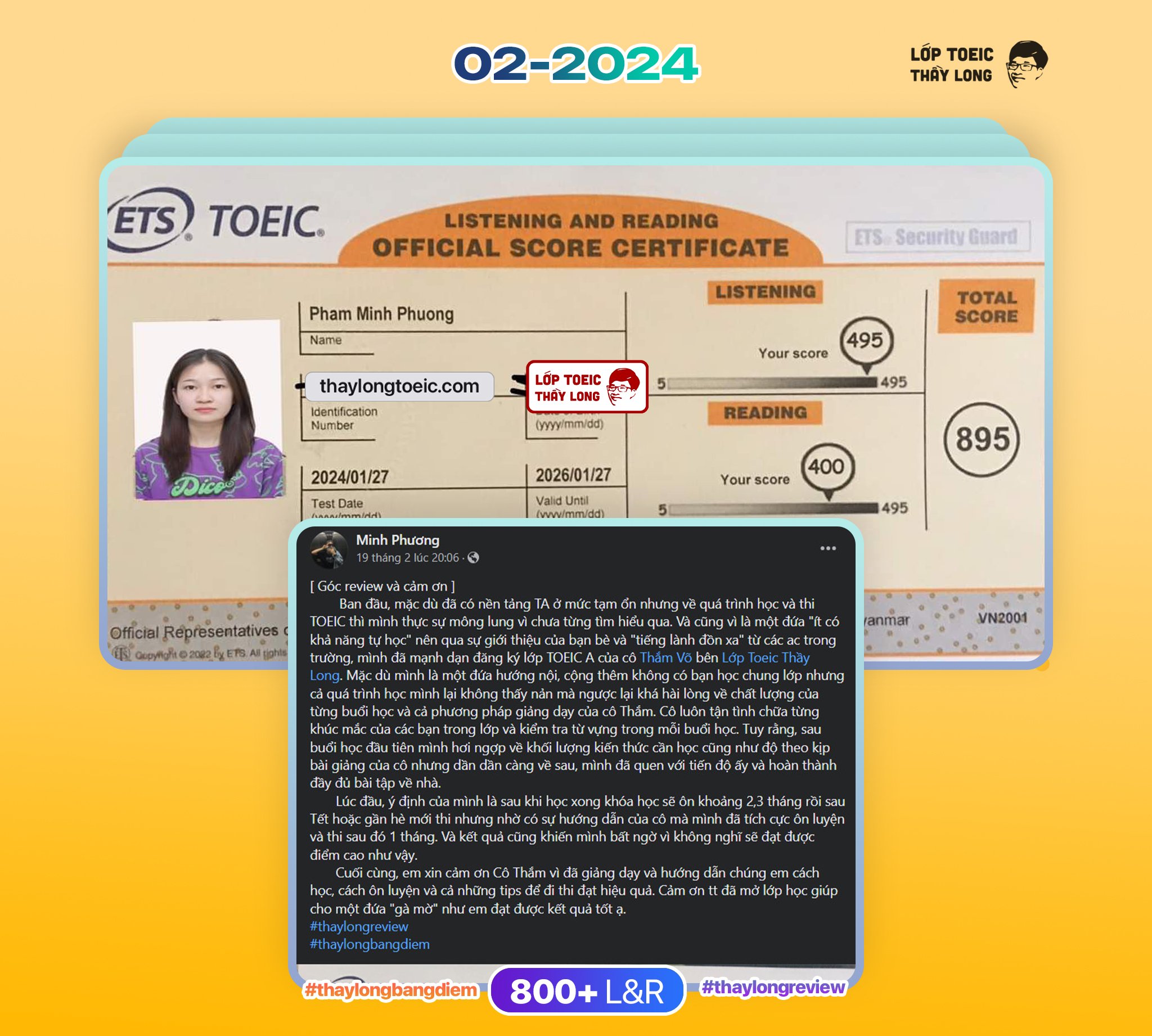 Pham Minh Phuong 895 TOEIC 27/01/2024 Ms Thắm A128