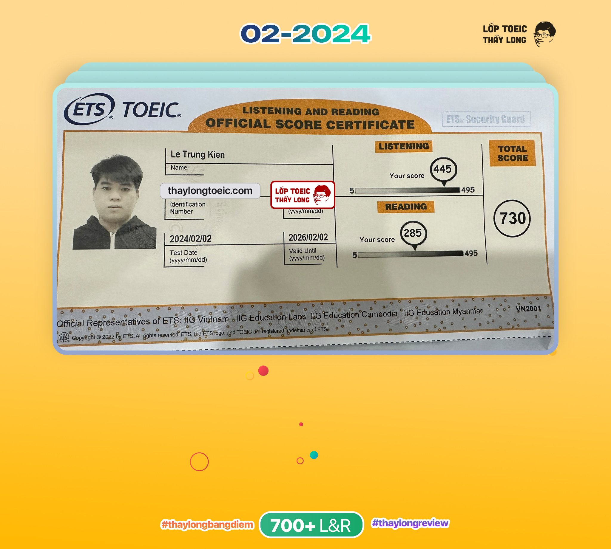 Le Trung Kien 730 TOEIC 02/02/2024 Ms Huyền Chi A147
