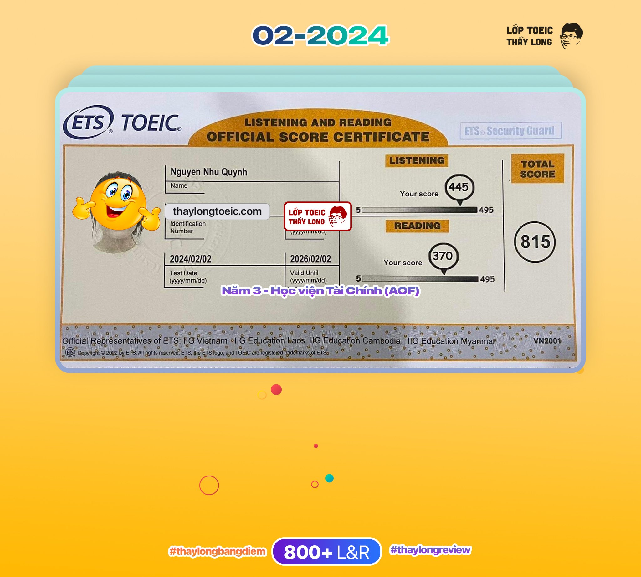 Nguyen Nhu Quynh 815 TOEIC 02/02/2024 Ms Thắm Võ A97
