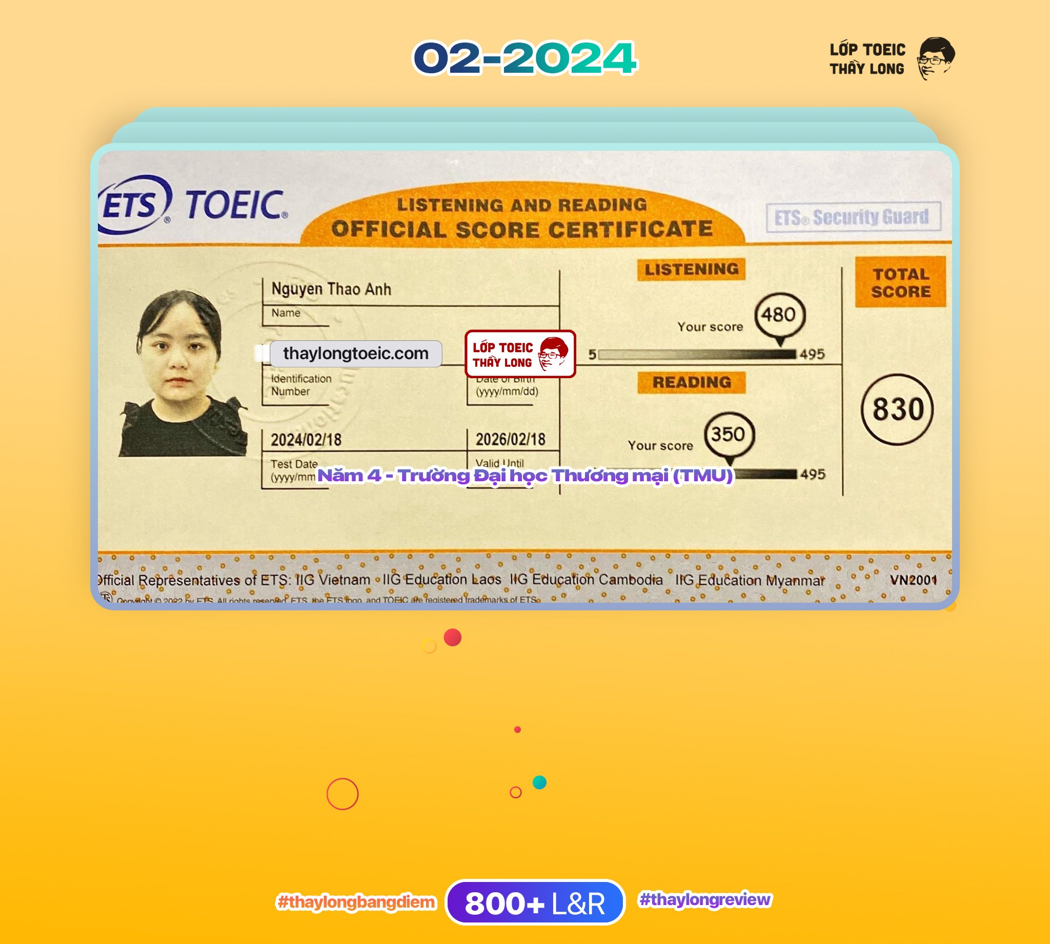Nguyen Thao Anh 830 TOEIC 18/02/2024 Ms Hạnh ft Ms Linh Chi A142
