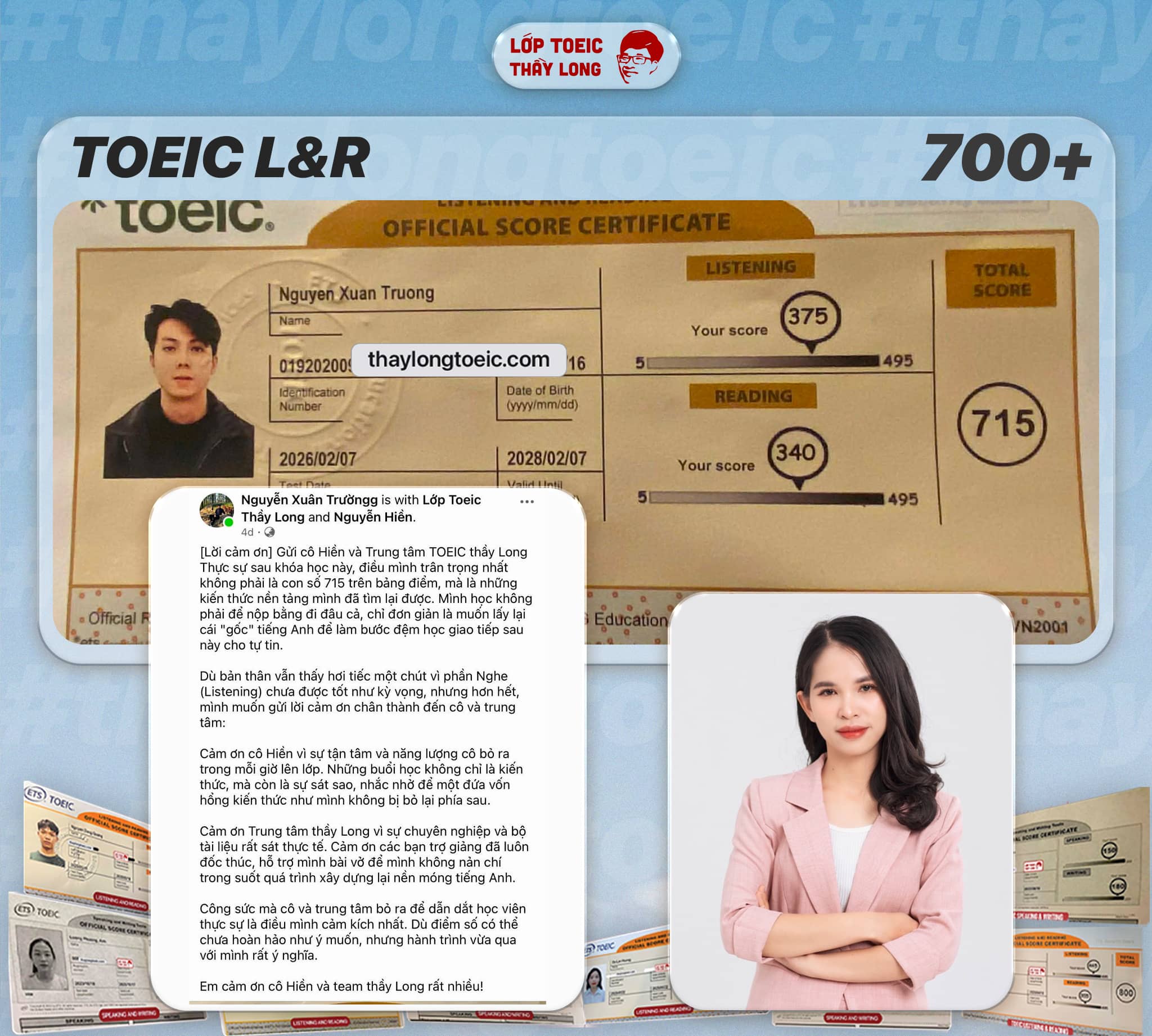 Zalo:  Lớp TOEIC thầy Long (0961763990)