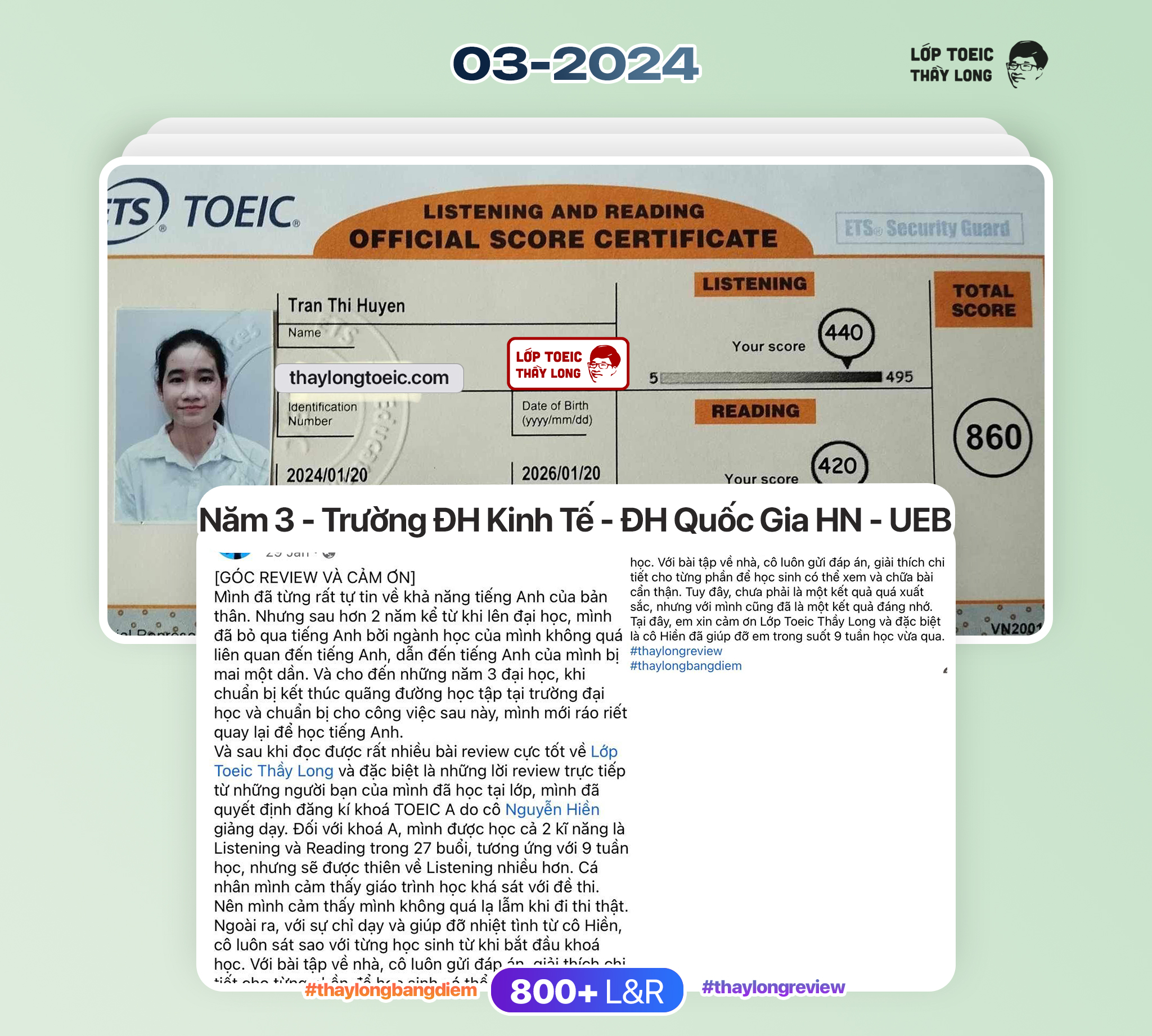Tran Thi Huyen 860 TOEIC 20/01/2024 Ms Hiền A155