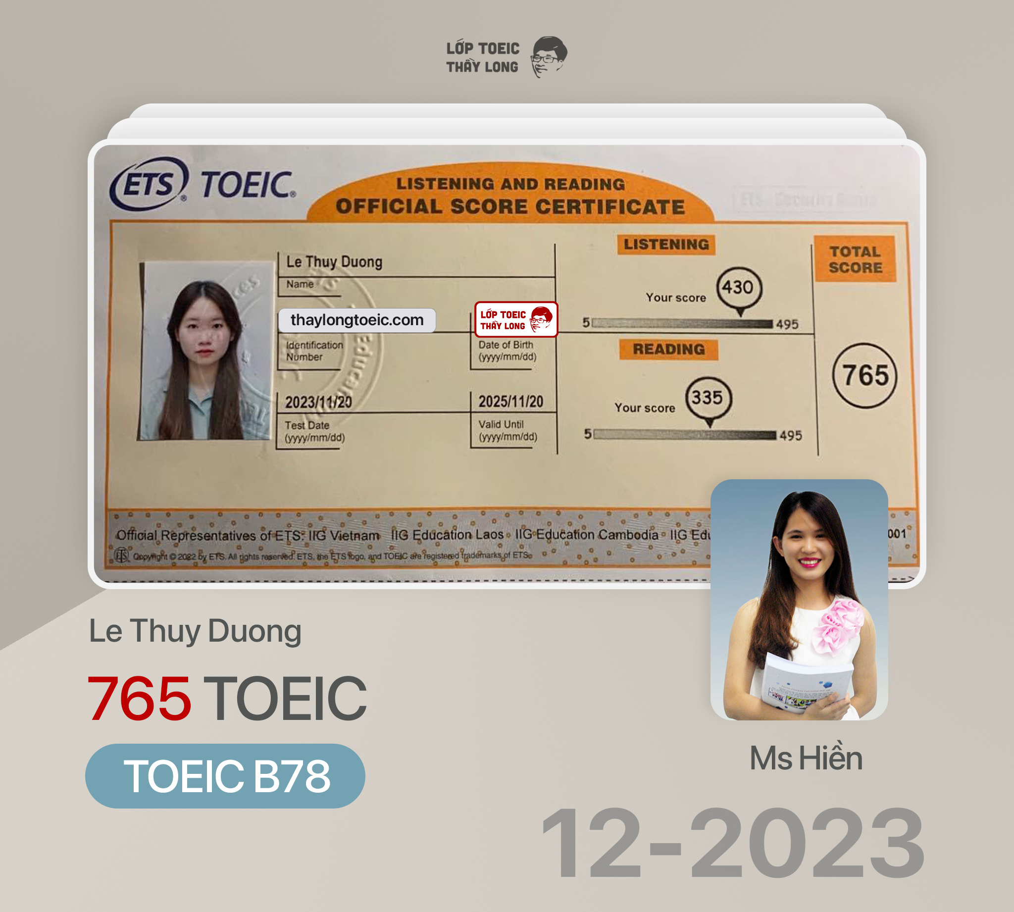 Le Thuy Duong 765 TOEIC 20/11/2023 Ms Hiền B78