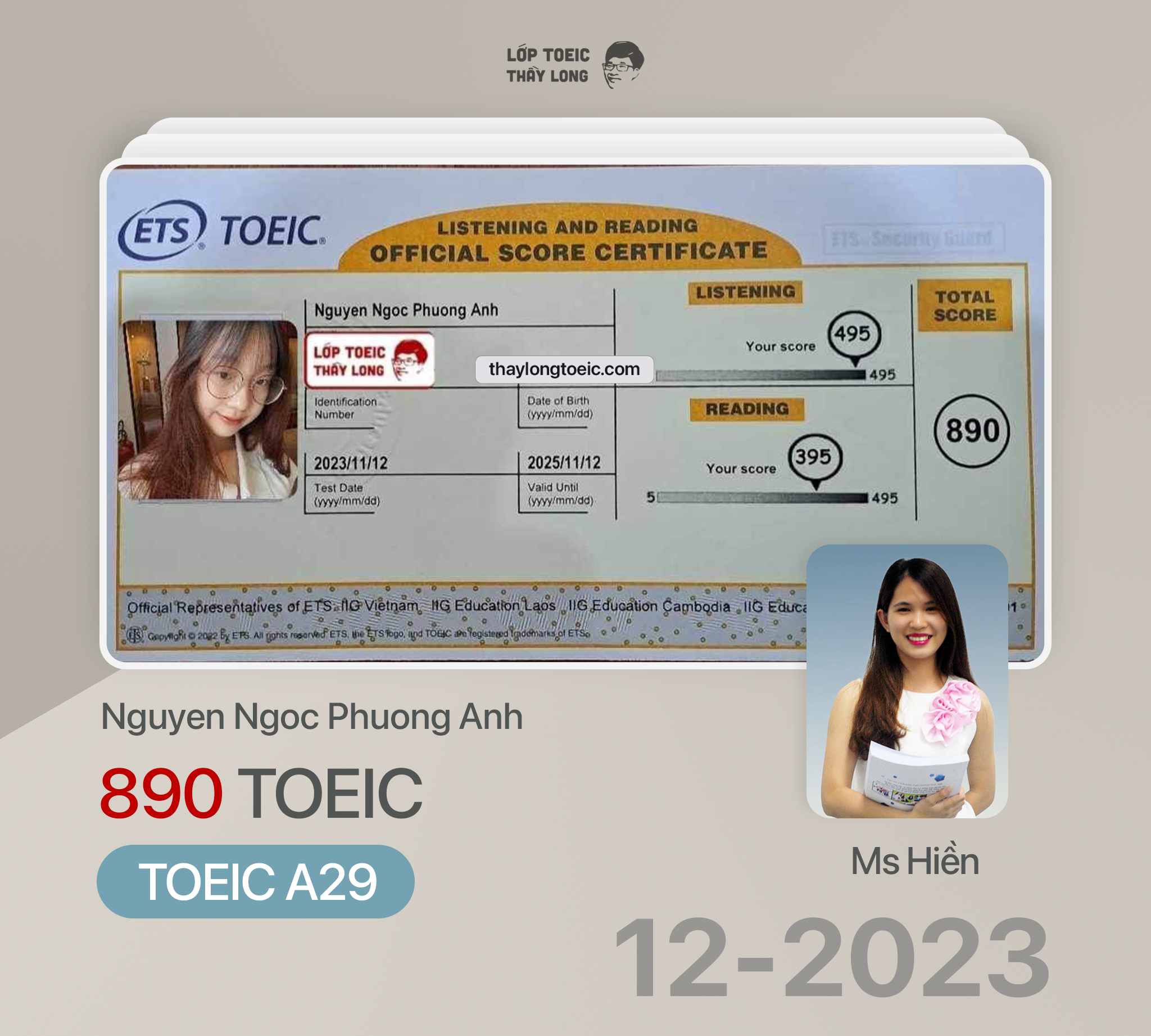 Nguyen Ngoc Phuong Anh 890 TOEIC 12/11/2023 Ms Hiền A29