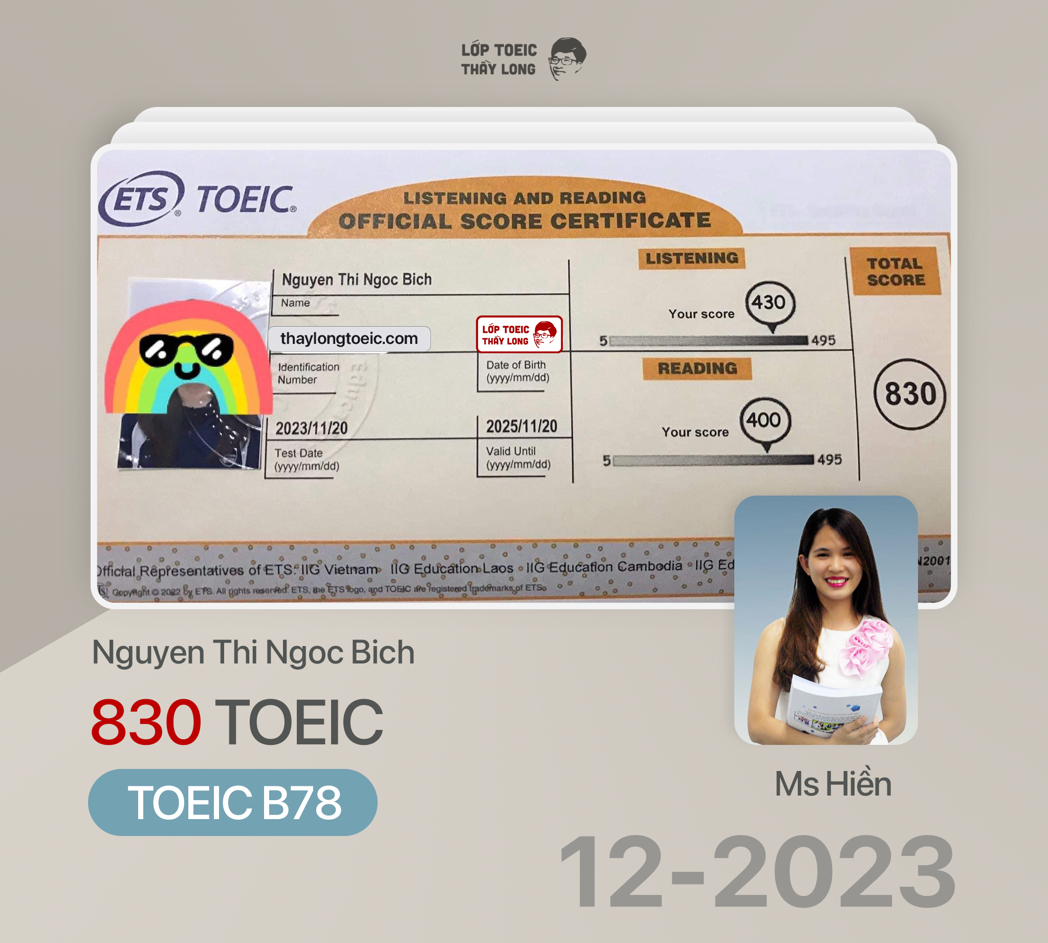 Nguyen Thi Ngoc Bich 830 TOEIC 20/11/2023 Ms Hiền B78