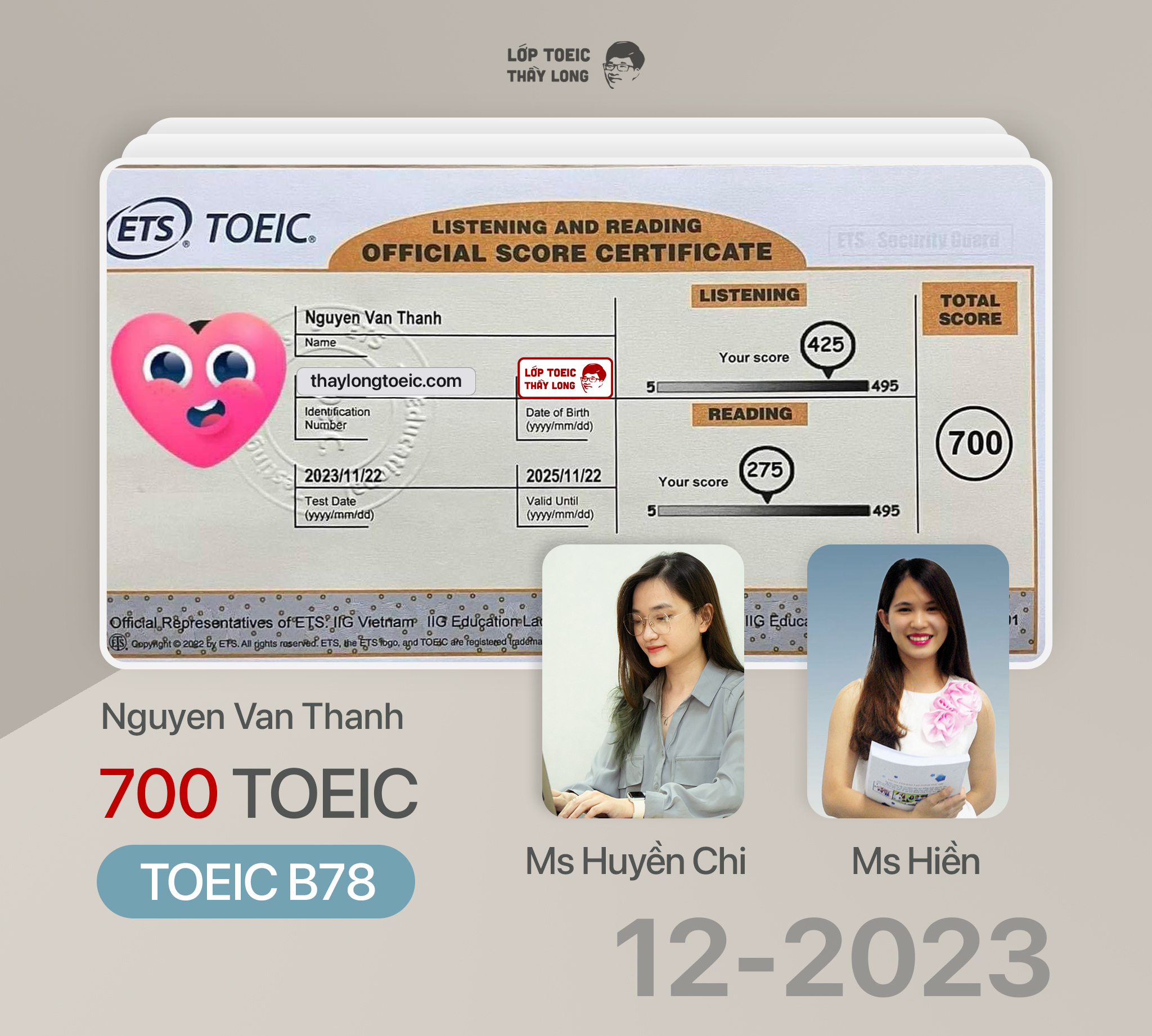 Nguyen Van Thanh 700 TOEIC 22/11/2023 Ms Huyền Chi ft Ms Hiền B78