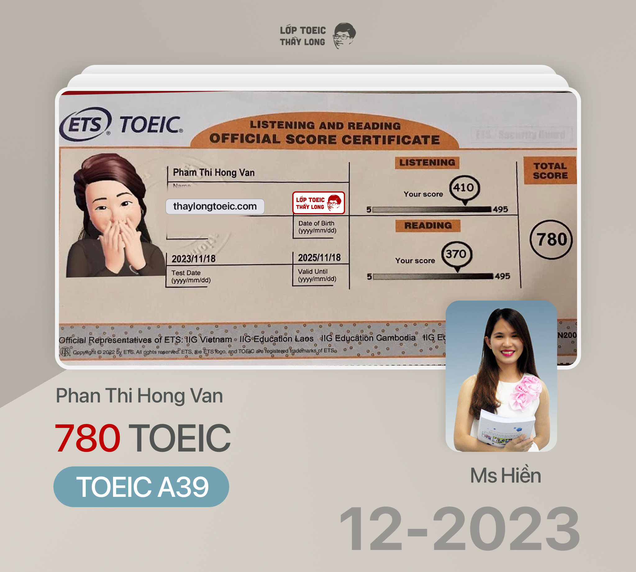 Pham Thi Hong Van 780 TOEIC 18/11/2023 Ms Hiền A39
