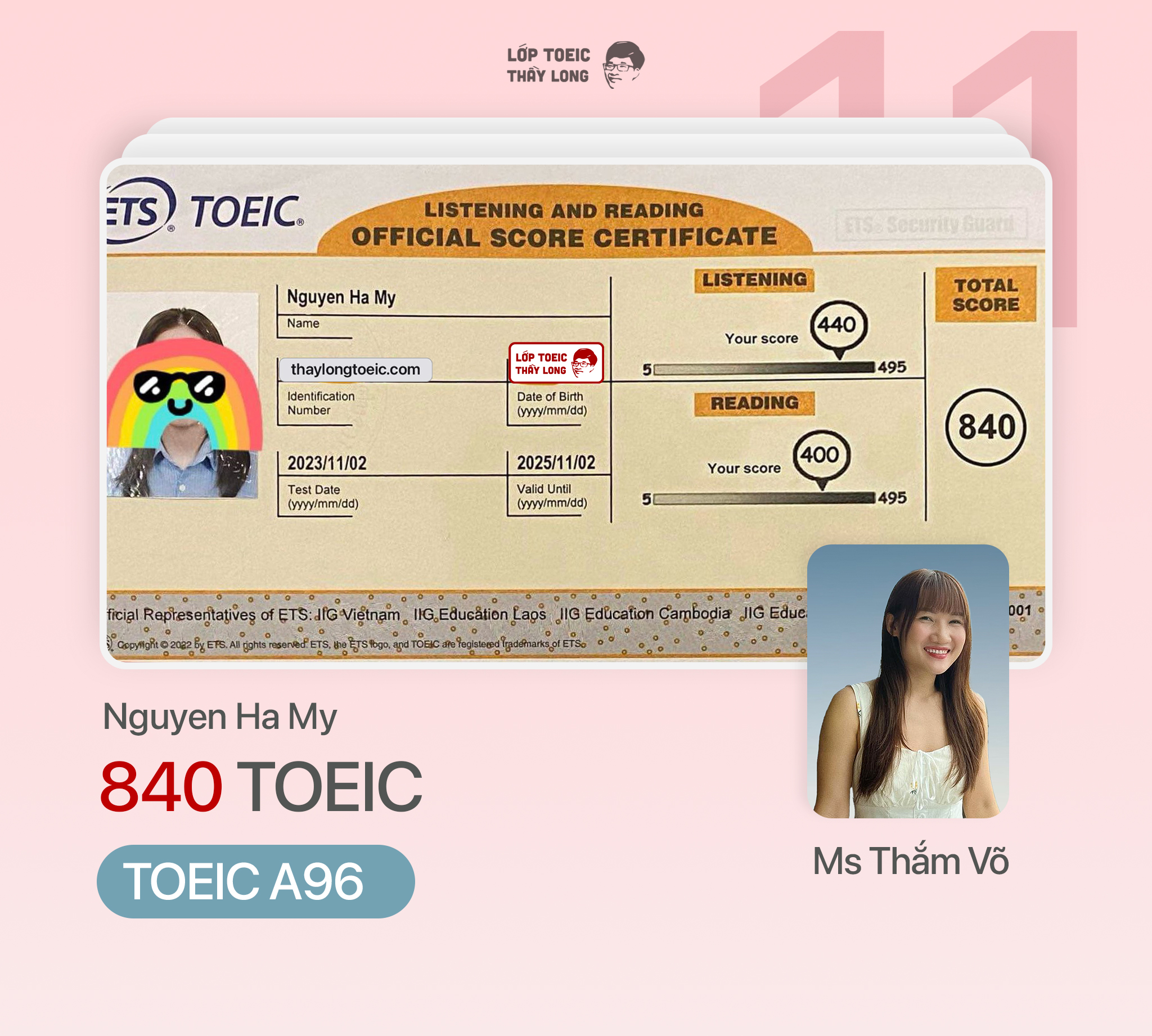 Nguyen Ha My 840 TOEIC 02/11/2023 Ms Thắm Võ A96
