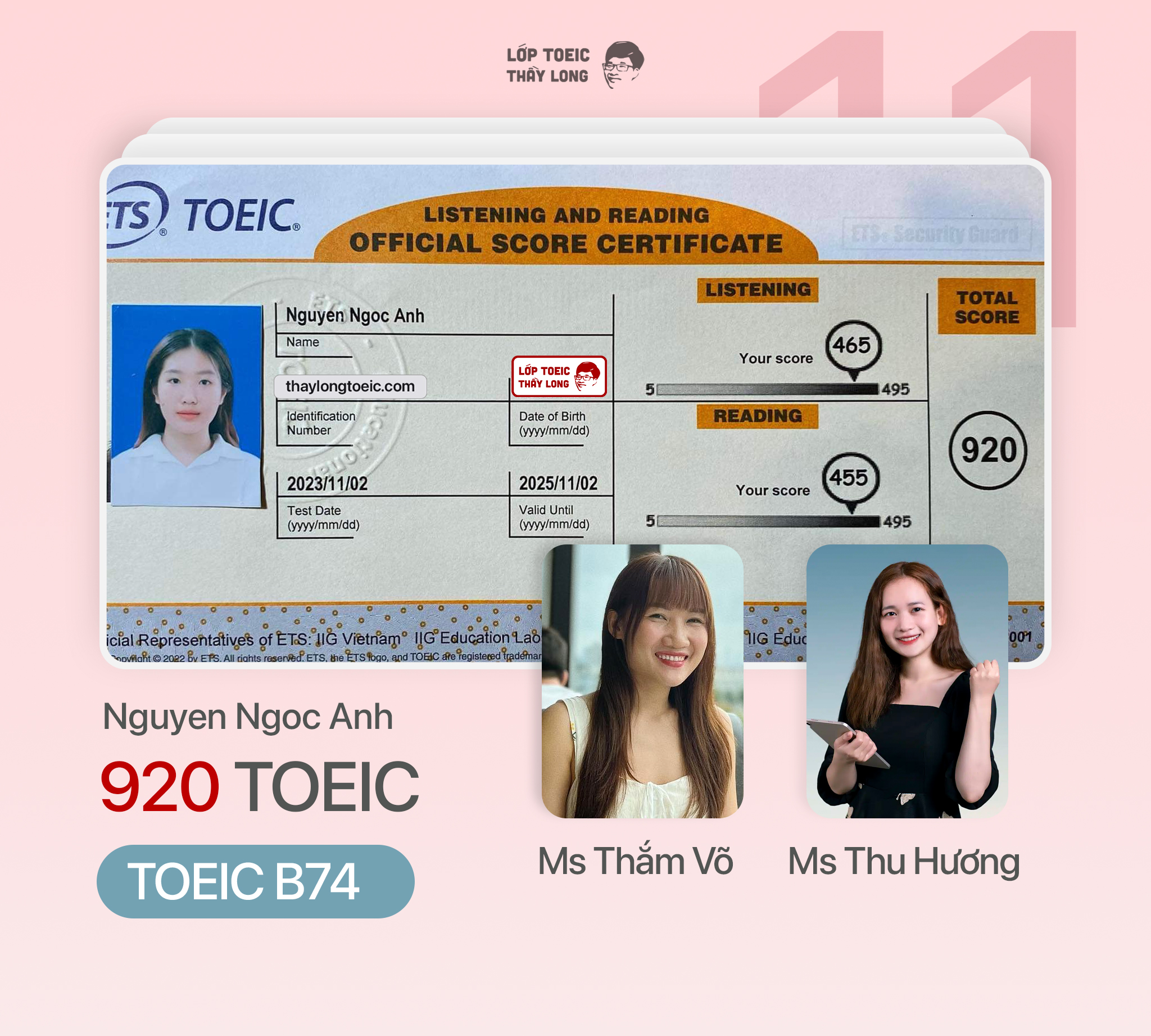 Nguyen Ngoc Anh 920 TOEIC 02/11/2023 Ms Thắm võ ft Ms Thu Hương B74
