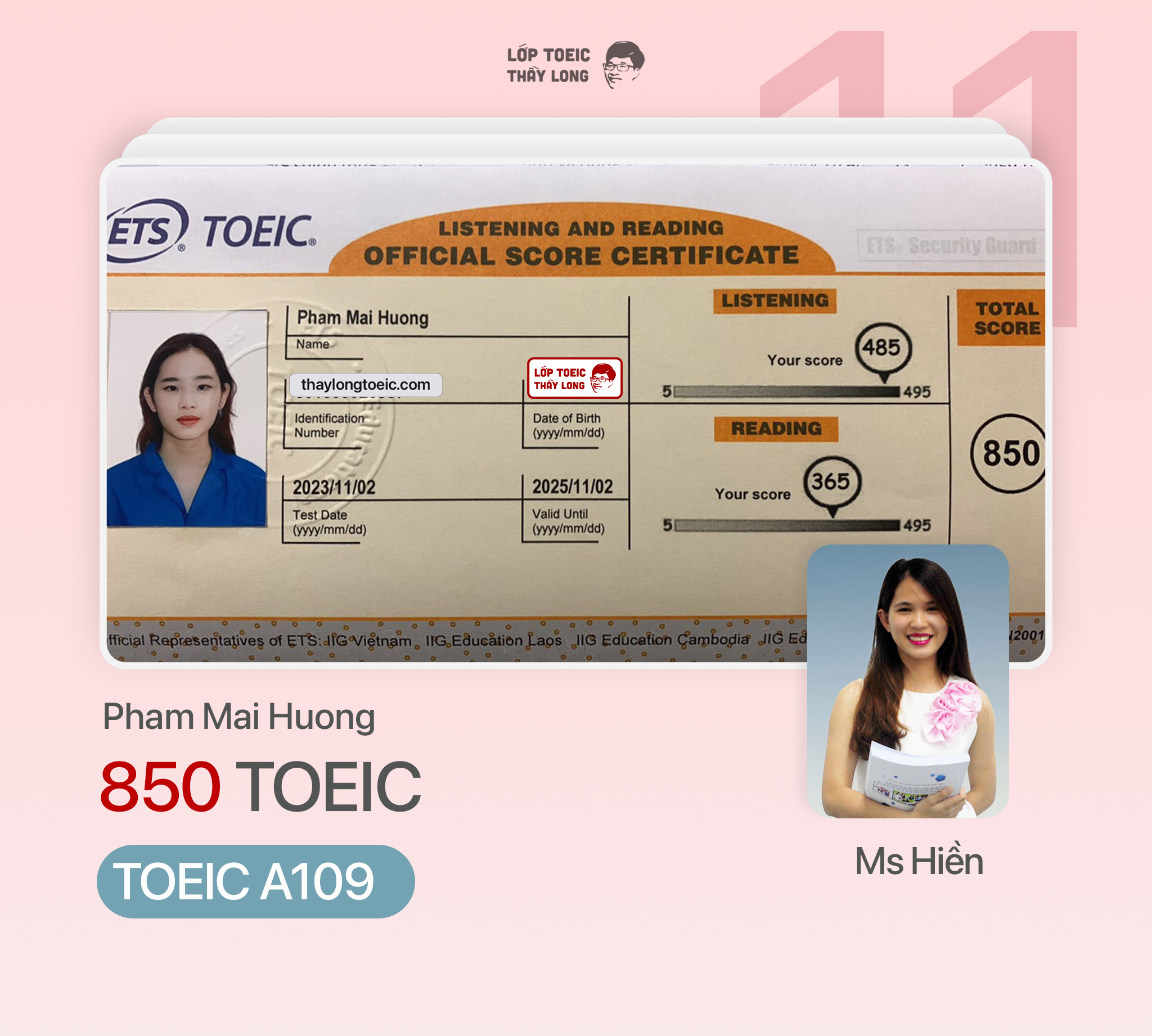 Pham Mai Huong 850 TOEIC 02/11/2023 Ms Hiền A109