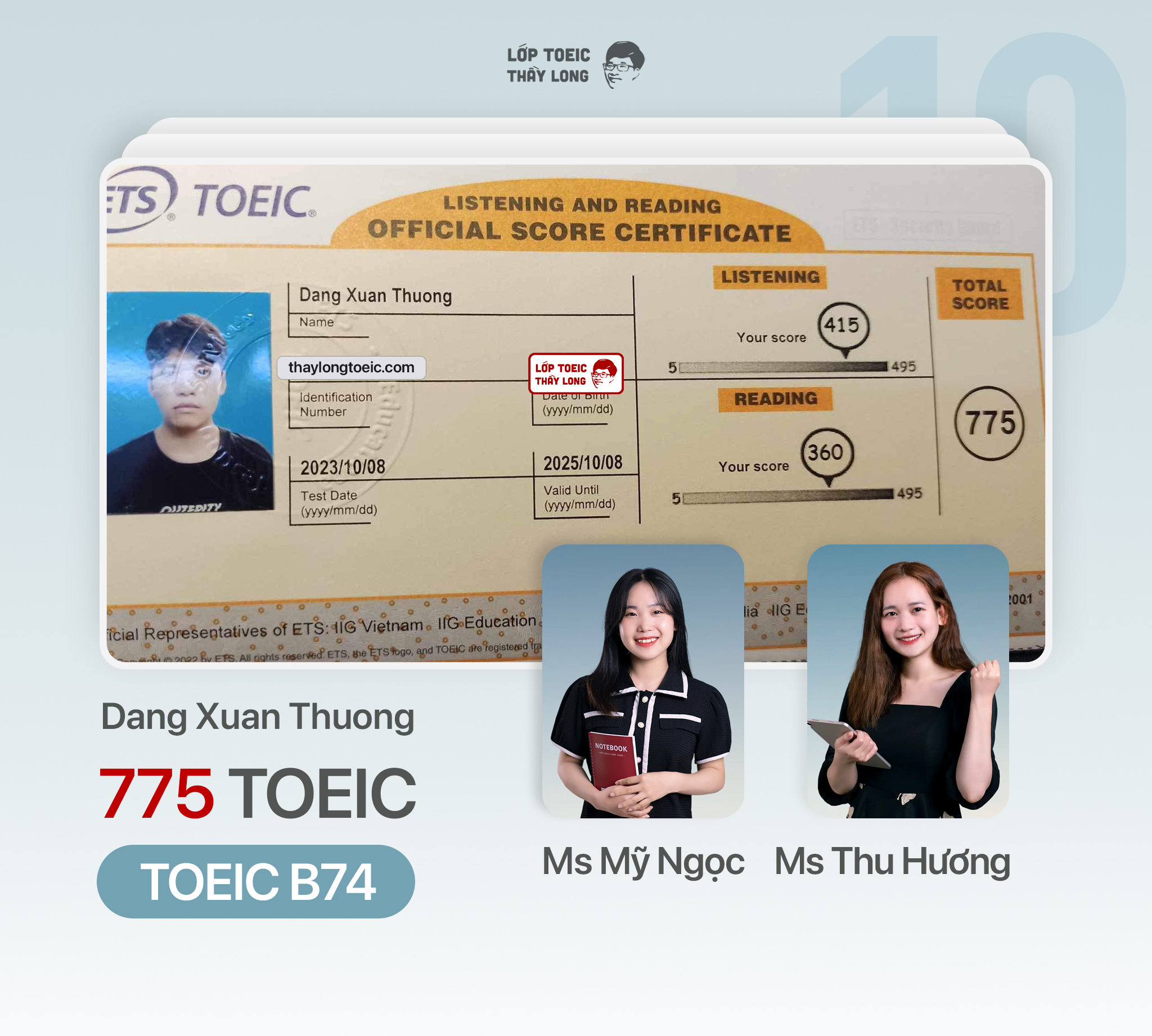 Dang Xuan Thuong 775 TOEIC 08/10/2023 Ms Mỹ Ngọc ft Ms Thu Hương B74