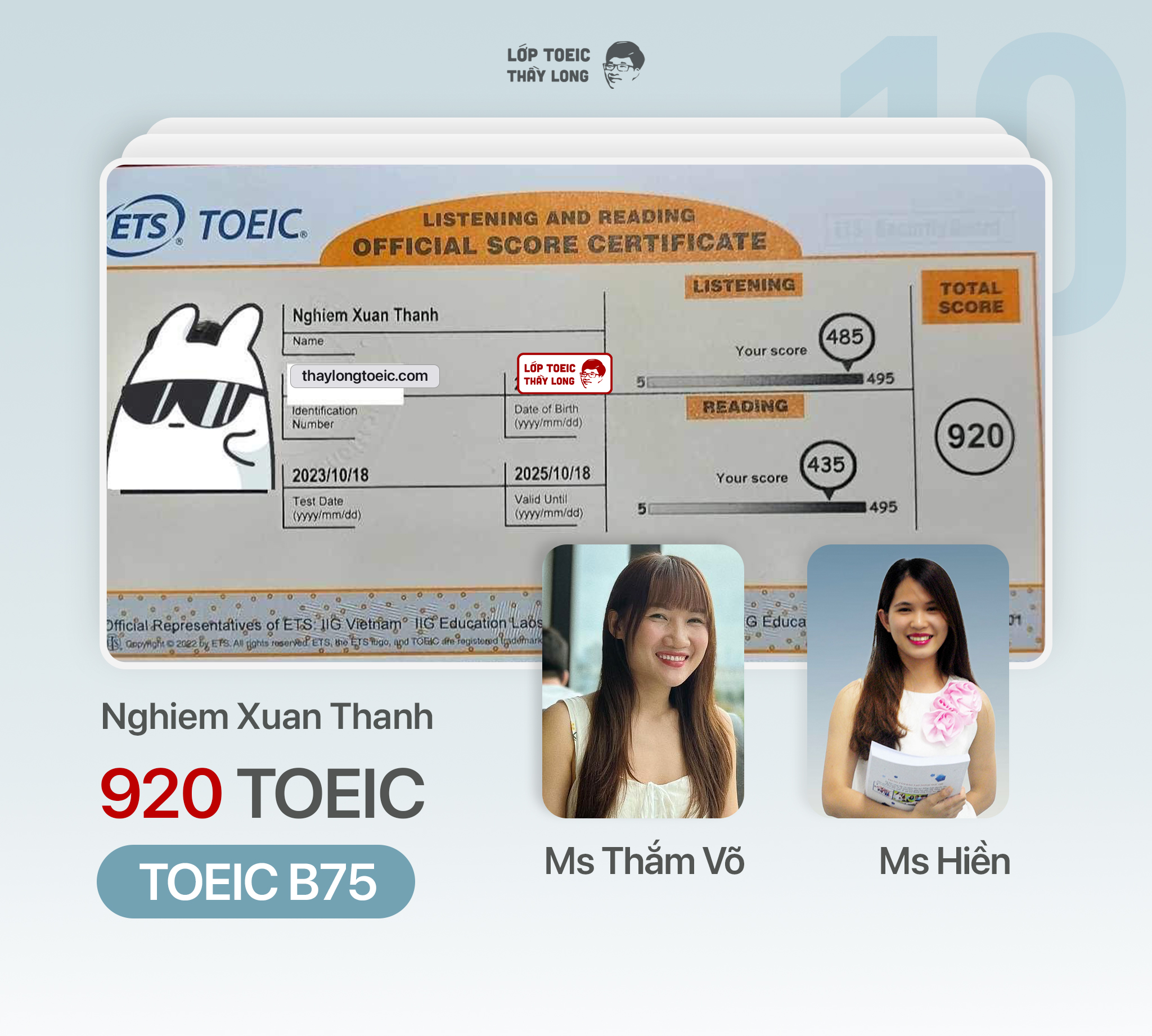 Nghiem Xuan Thanh 920 TOEIC 18/10/2023 Ms Thắm Võ ft Ms Hiền
