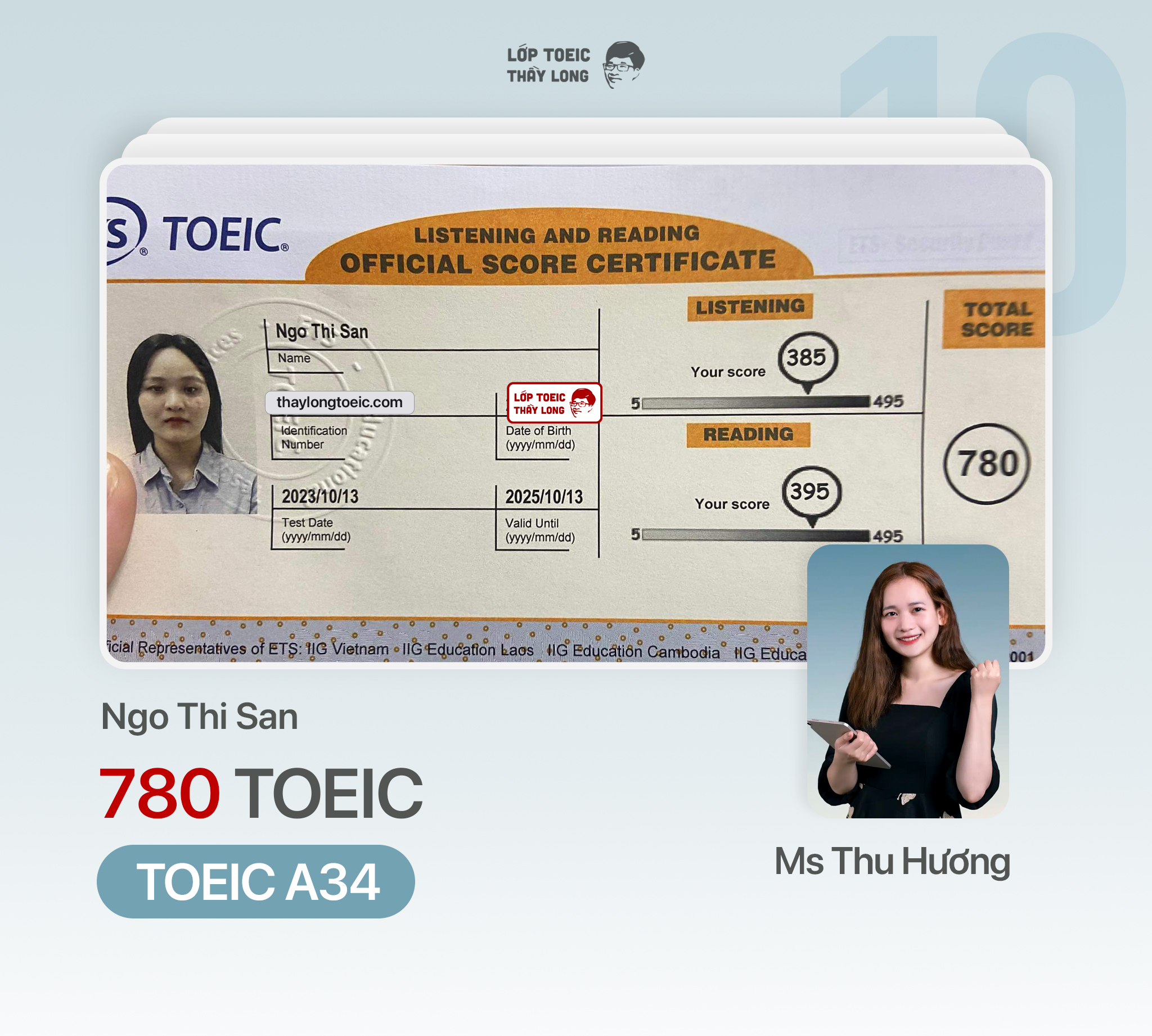 Ngo Thi San 780 TOEIC 13/10/2023 Ms Thu Hương A34