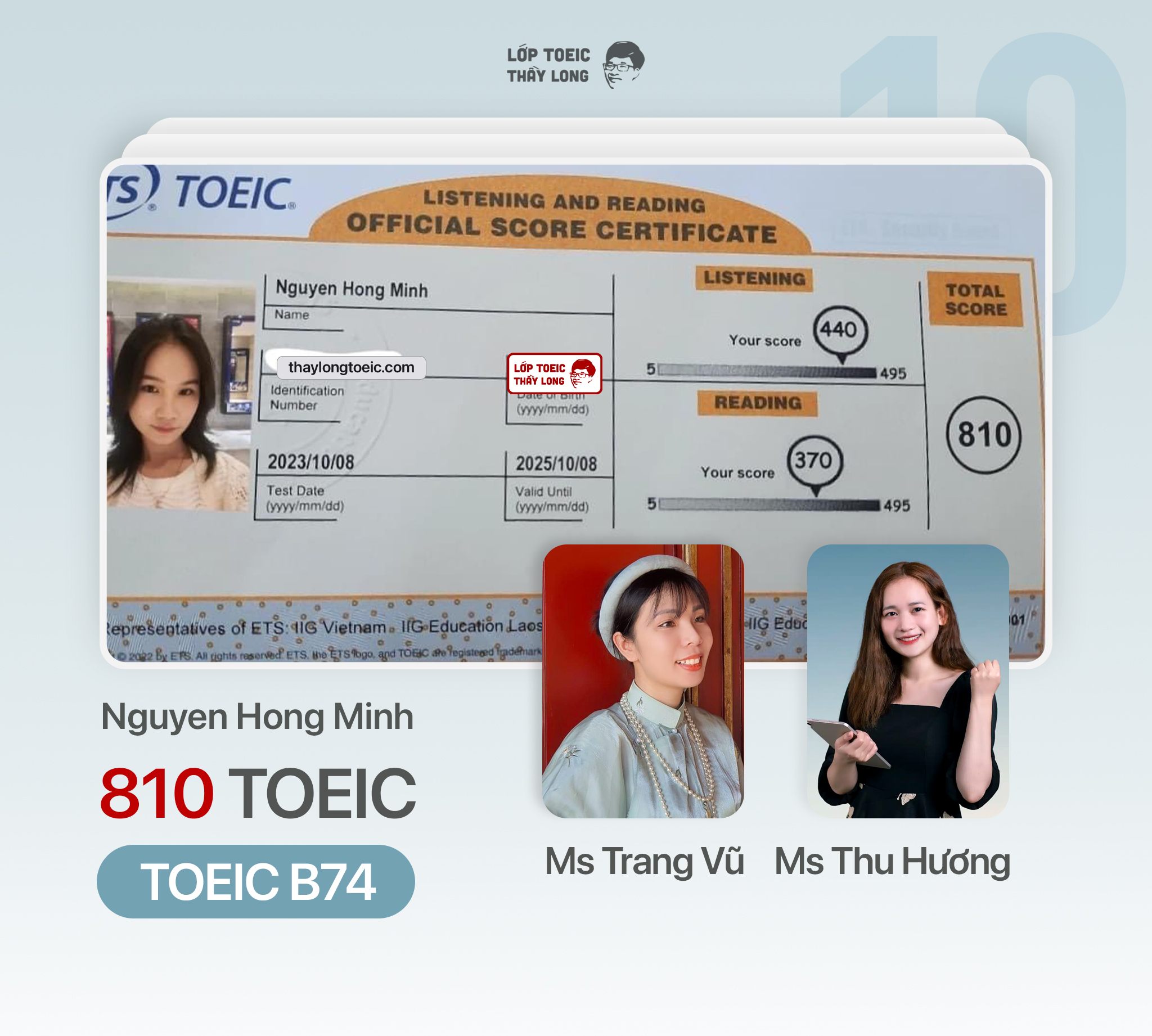 Nguyen Hoang Minh 810 TOEIC 08/10/2023 Ms Trăng Vũ ft Ms Thu Hương B74
