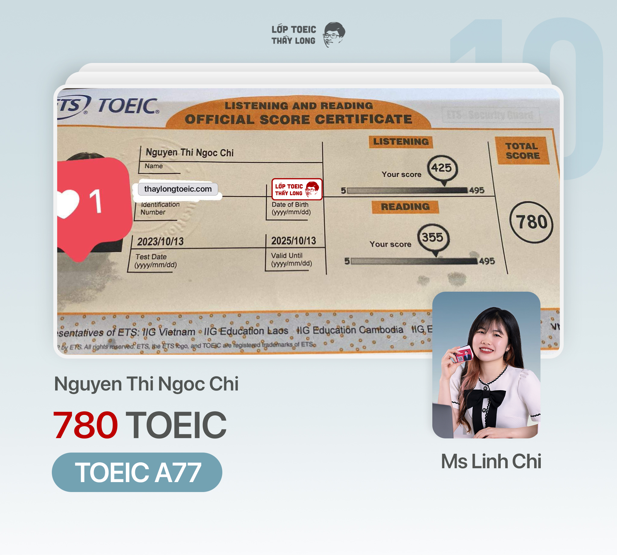 Nguyen Thi Ngoc Chi 780 TOEIC 13/10/2023 Ms Linh Chi A77