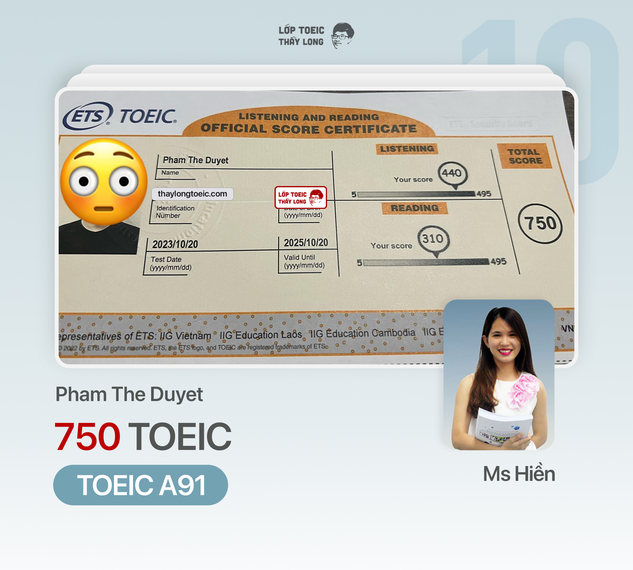 Pham The Duyet 750 TOEIC 20/10/2023 Ms Hiền A91