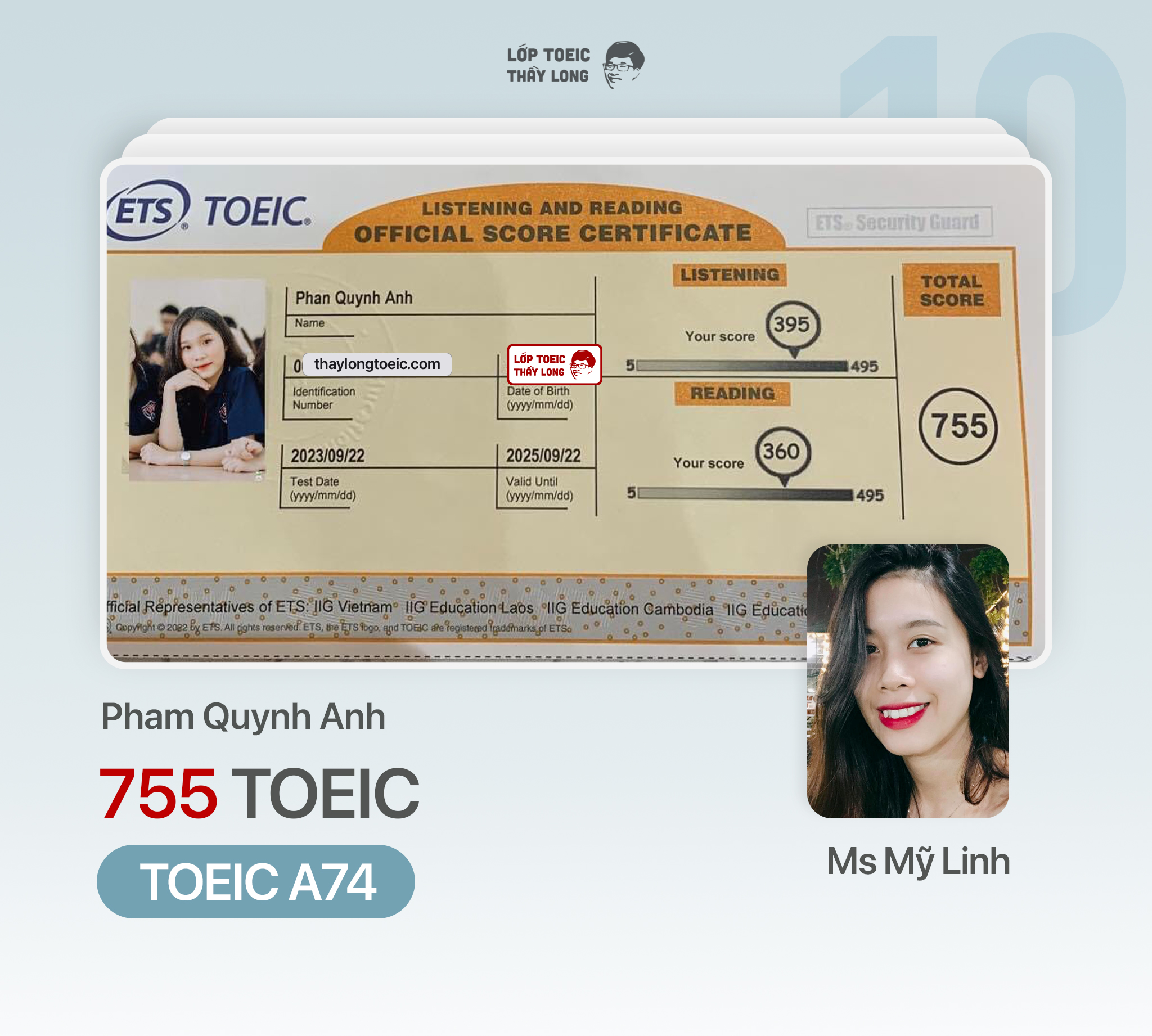 Pham Quynh Anh 755 TOEIC 22/09/2023 Ms Mỹ Linh A74