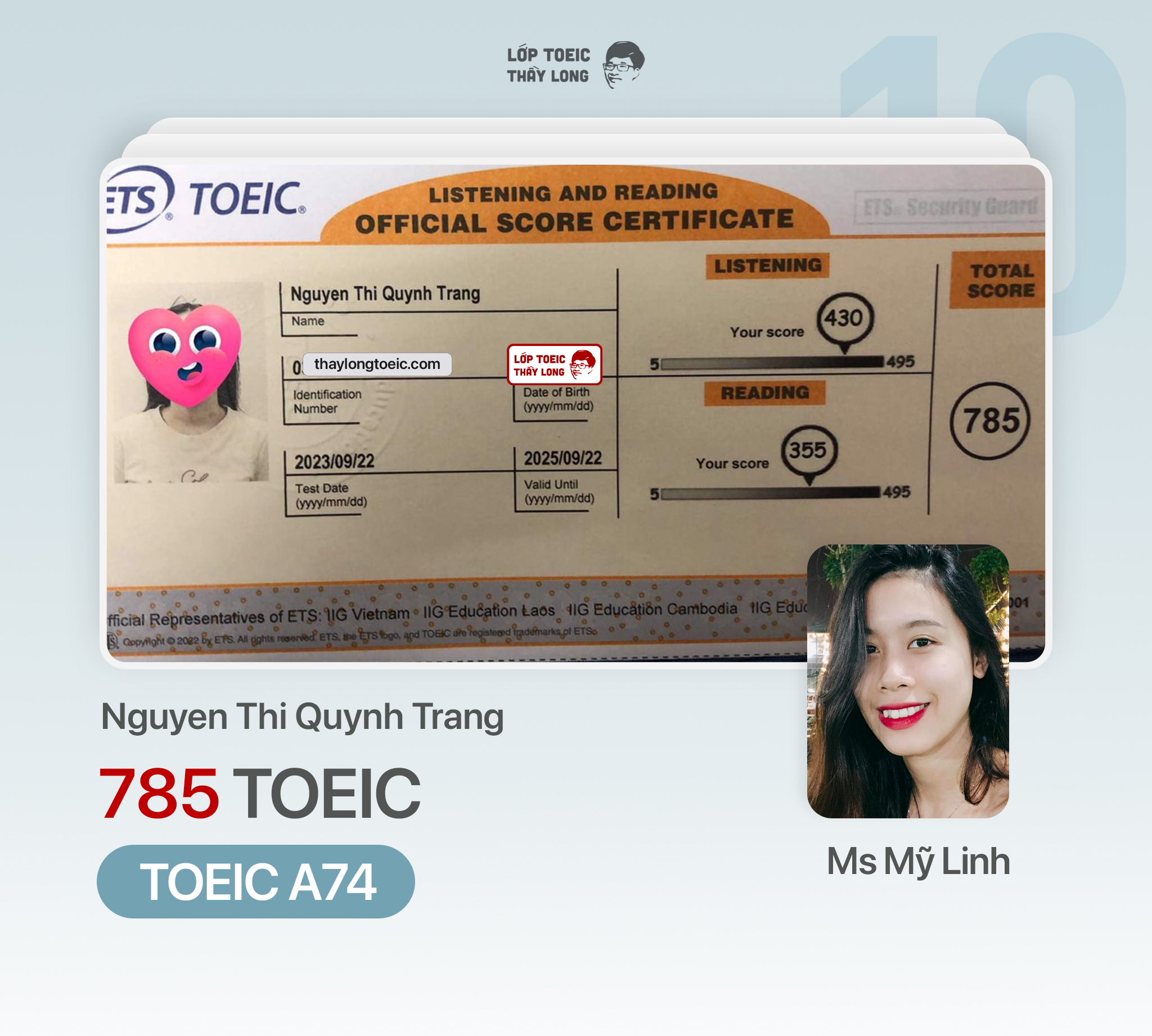 Nguyen Thi Quynh Trang 785 TOEIC 22/09/2023 Ms Mỹ Linh A74