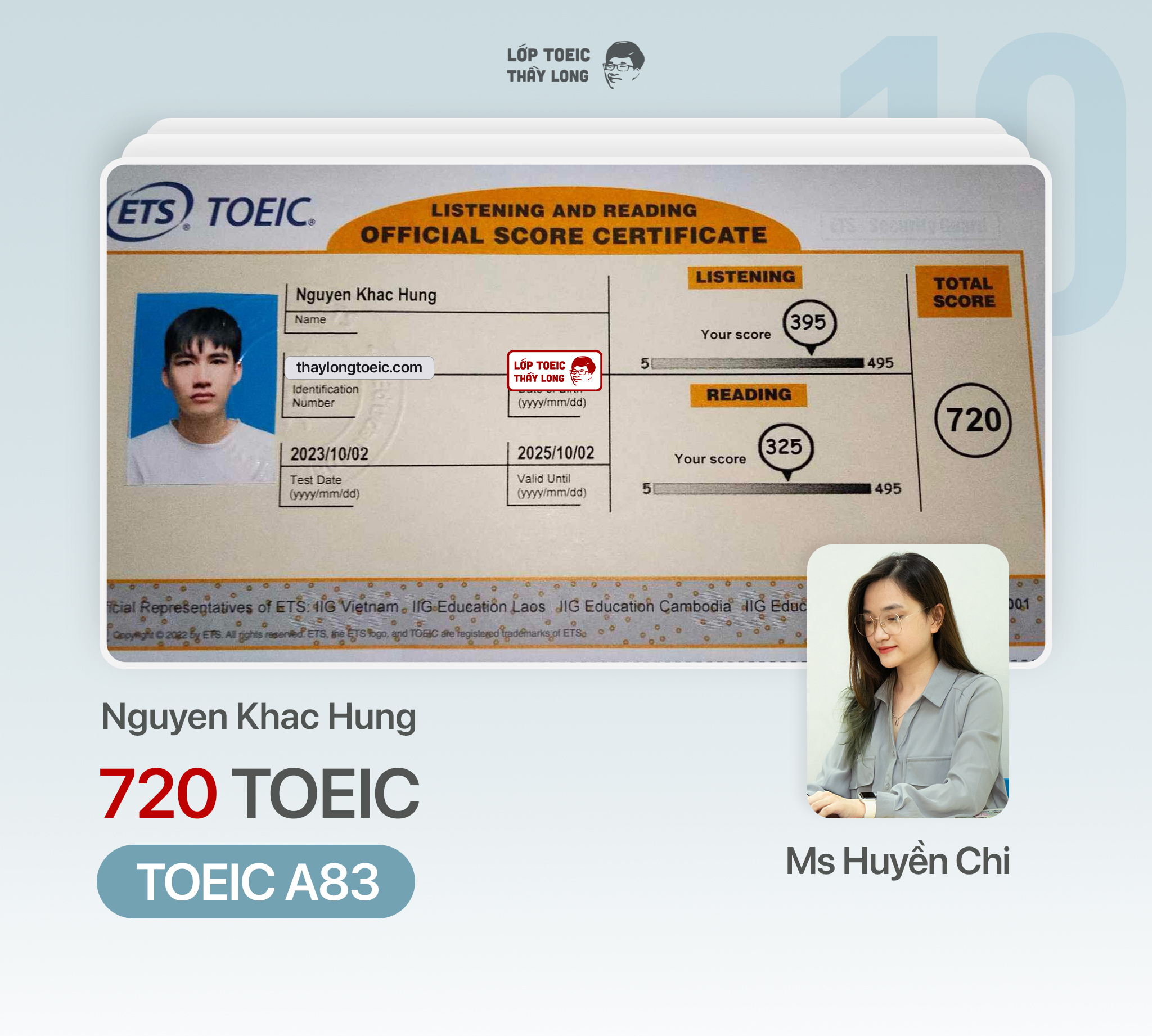 Nguyen Khac Hung 720 TOEIC 02/10/2023 Ms Huyền Chi A83