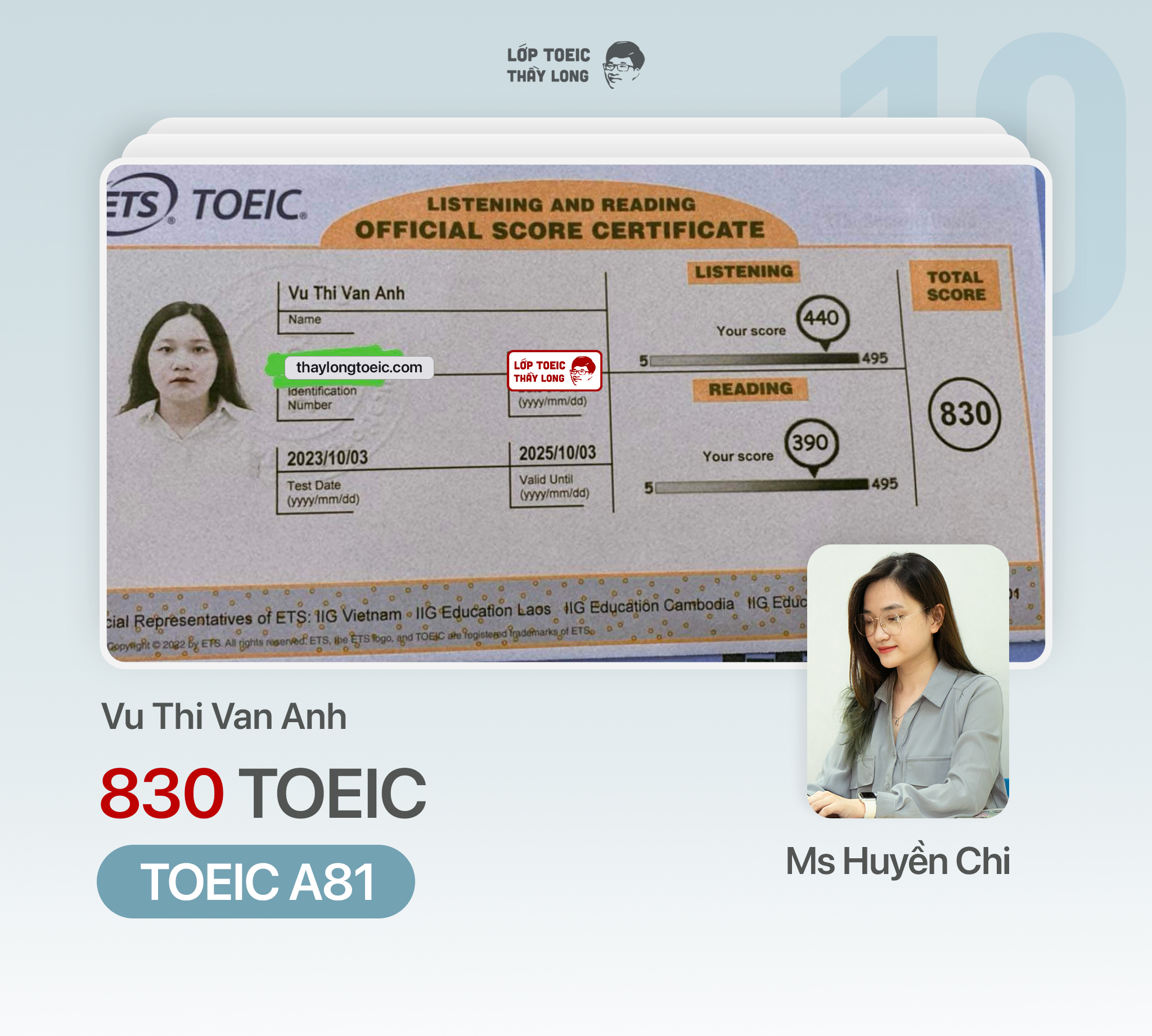 Vu Thi Van Anh 830 TOEIC 03/10/2023 Ms Huyền Chi A81