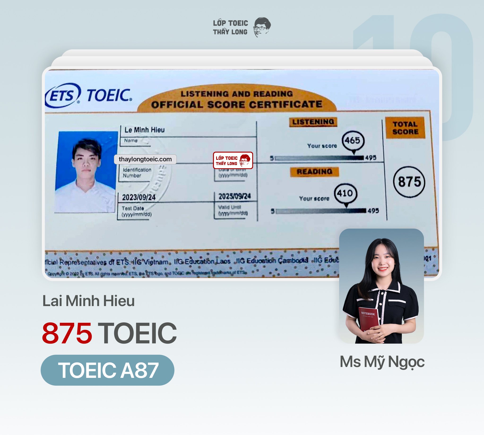 Lai Minh Hieu 875 TOEIC 24/09/2023 Ms Mỹ Ngọc A87