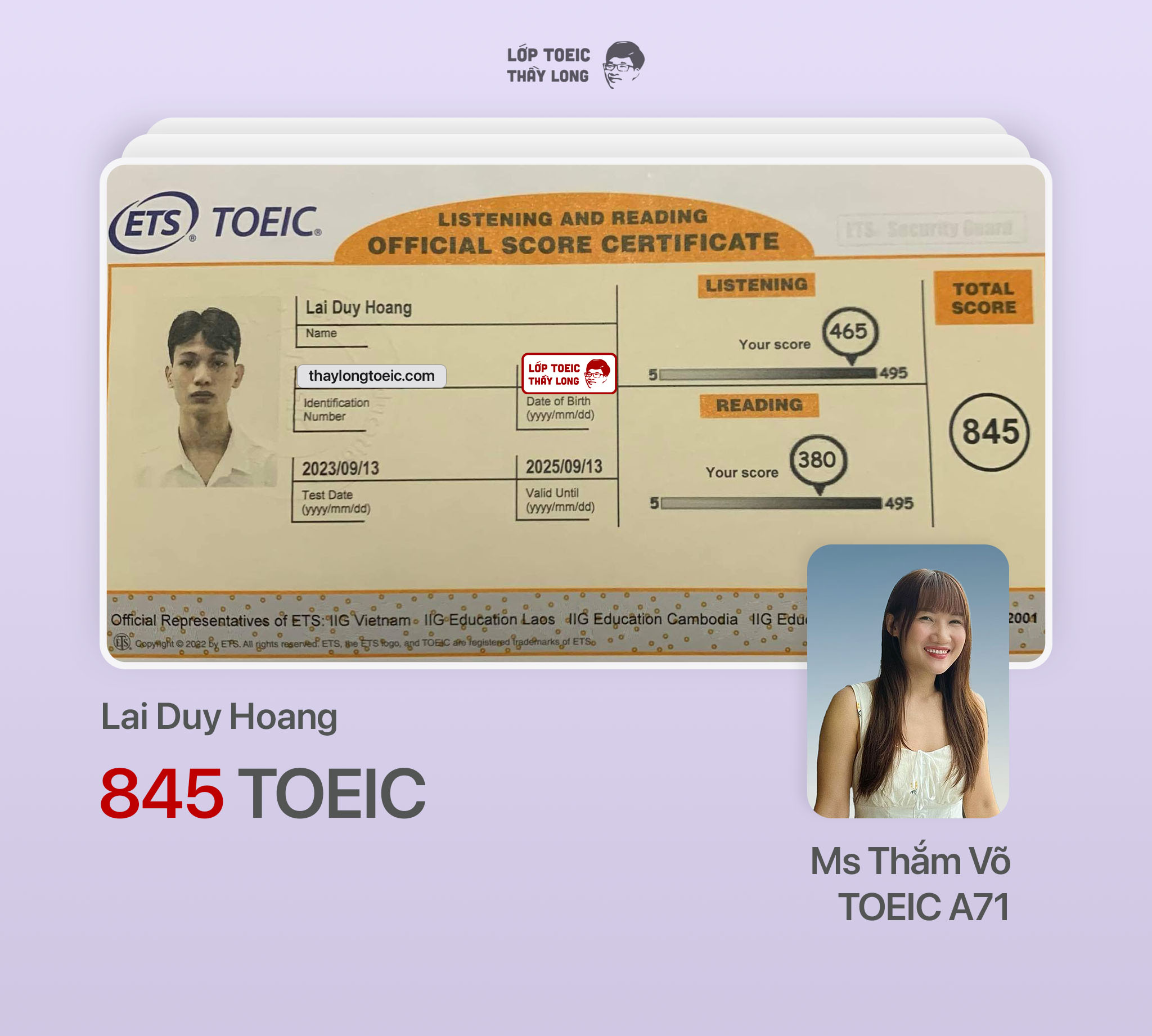 Lai Huy Hoang 845 TOEIC 13/09/2023 Ms Thắm Võ A71