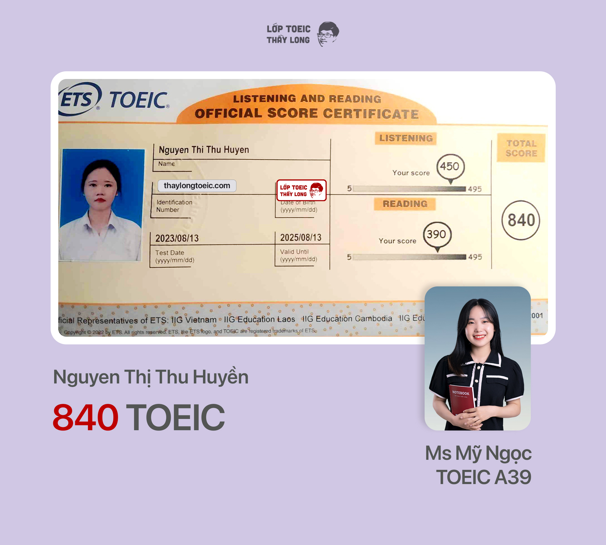 Nguyễn Thị Thu Huyền 840 TOEIC 13/08/2023 Ms Mỹ Ngọc A39