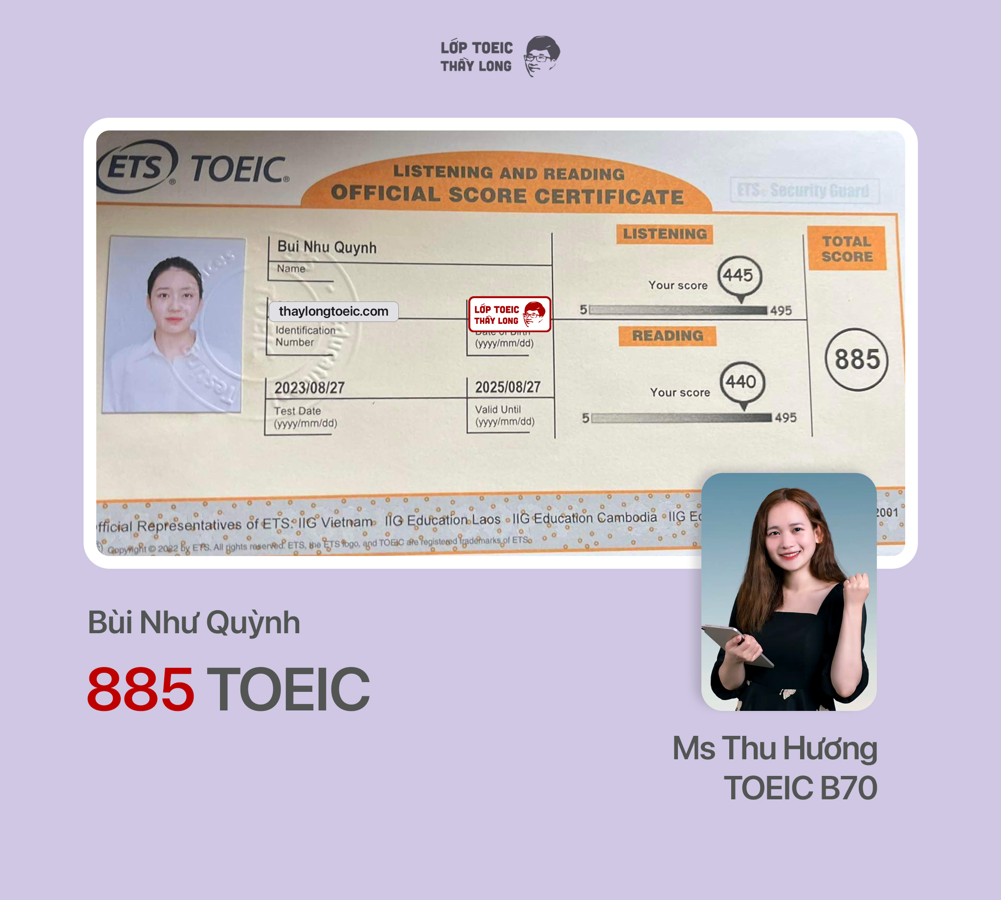 Bùi Như Quỳnh 885 TOEIC 27/08/2023 Ms Thu Hương B70