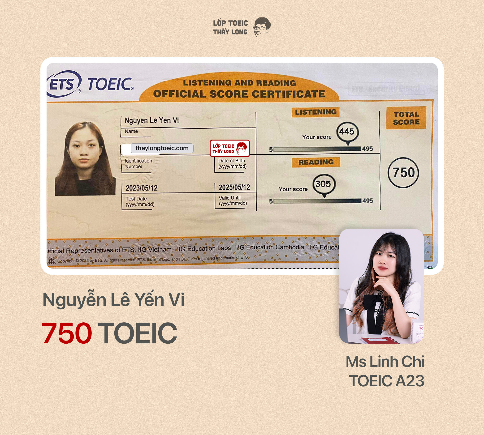 Nguyễn Lê Yến Vi 750 TOEIC 12/05/2023 Ms Linh Chi