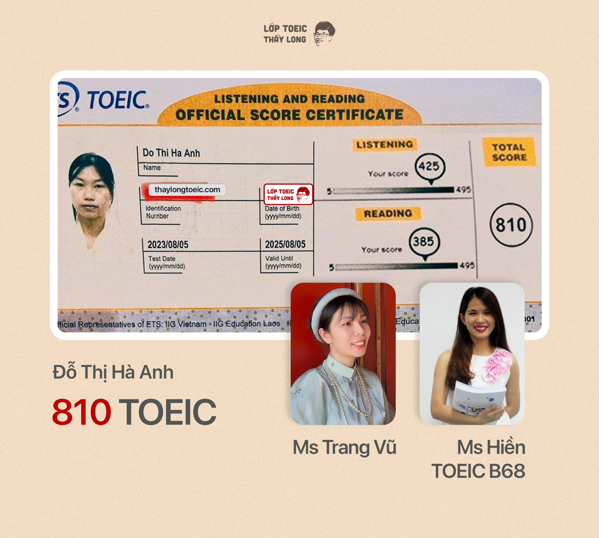 Đỗ Thị Hà Anh 810 TOEIC 05/08/2023 Ms Trang Vũ, Ms Hiền