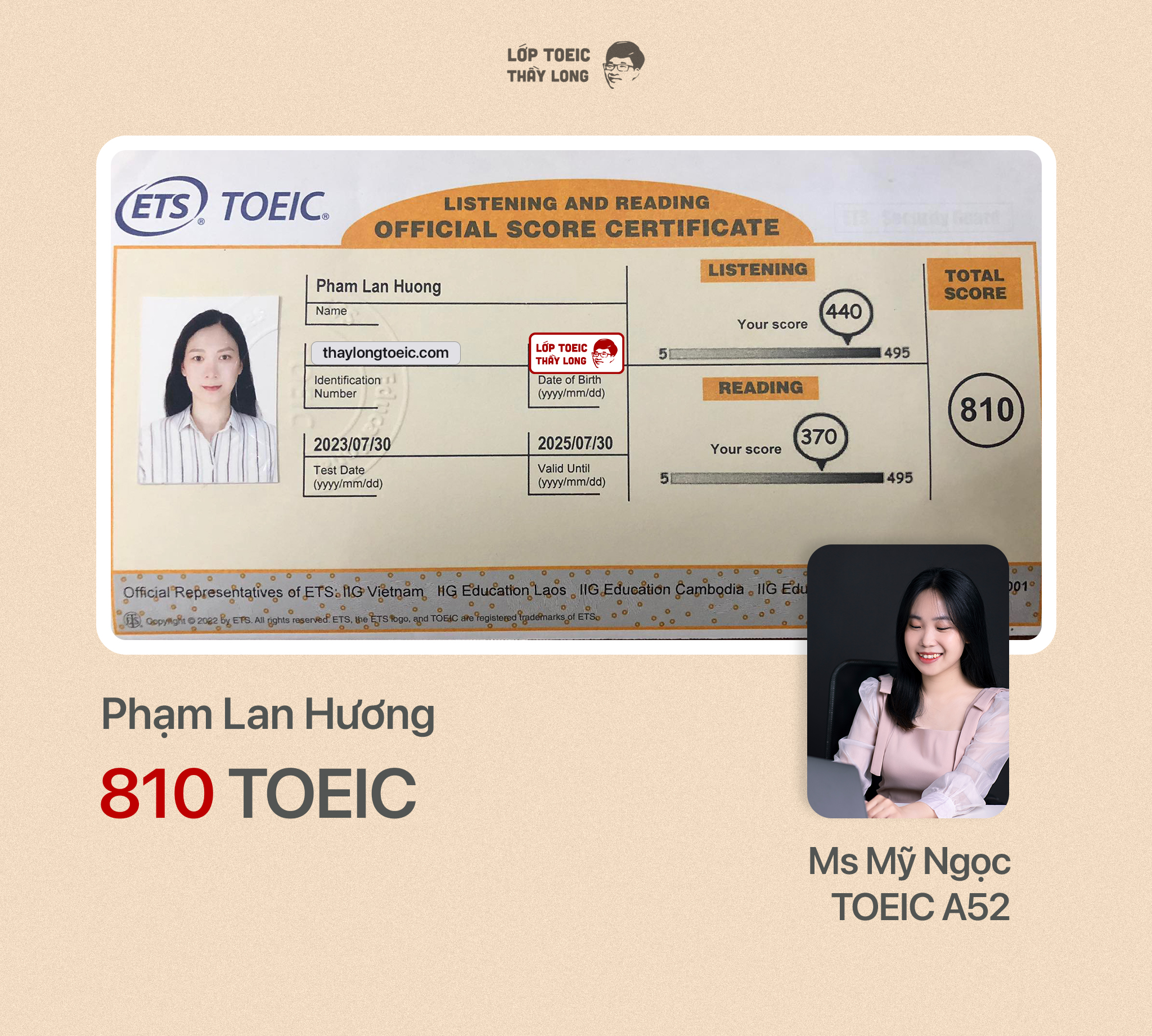 Phạm Lan Hương 810 TOEIC 30/07/2023 Ms Mỹ Ngọc